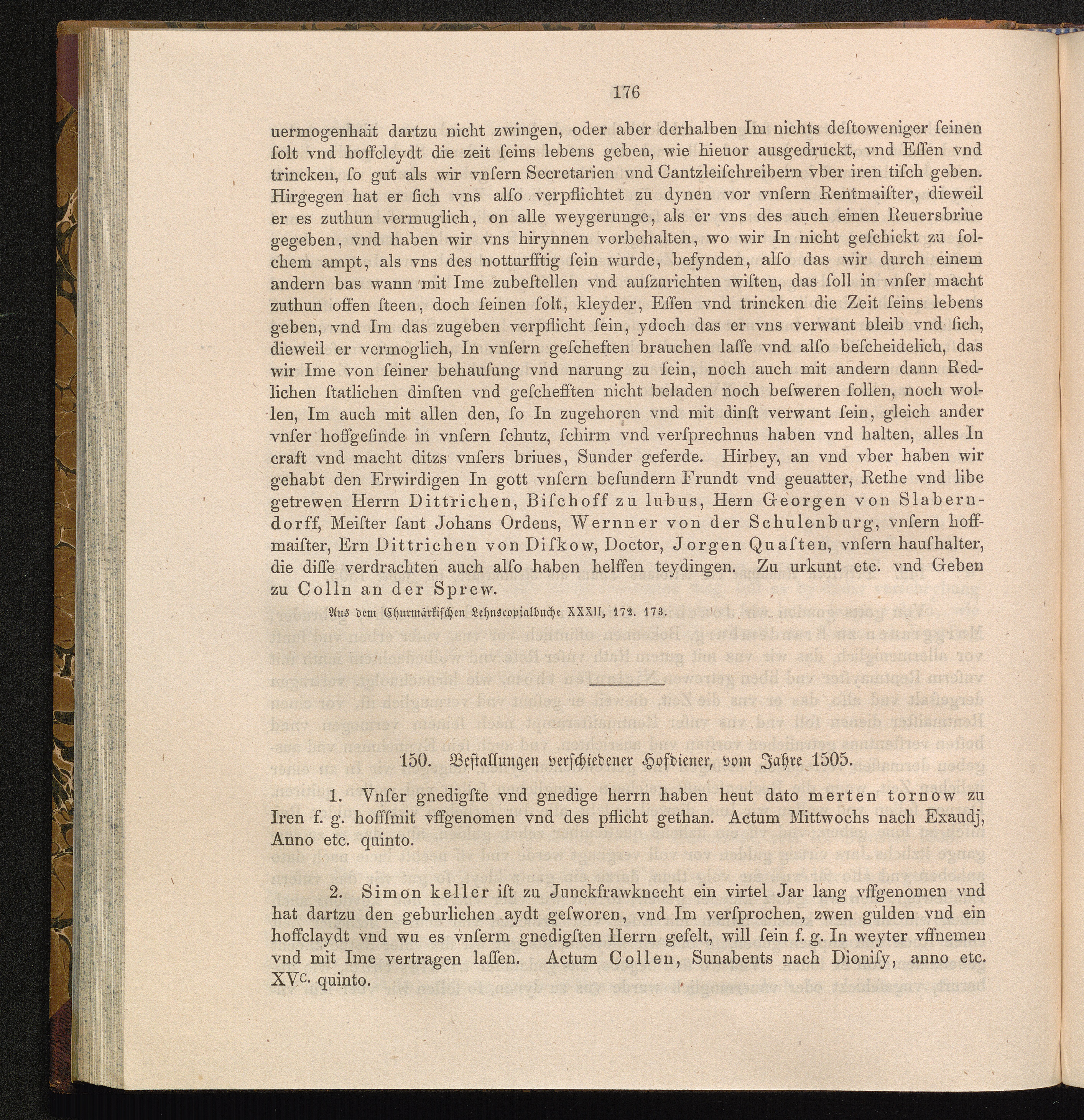 150. Bestallungen verschiedener Hofdiener, vom Jahre 1505.