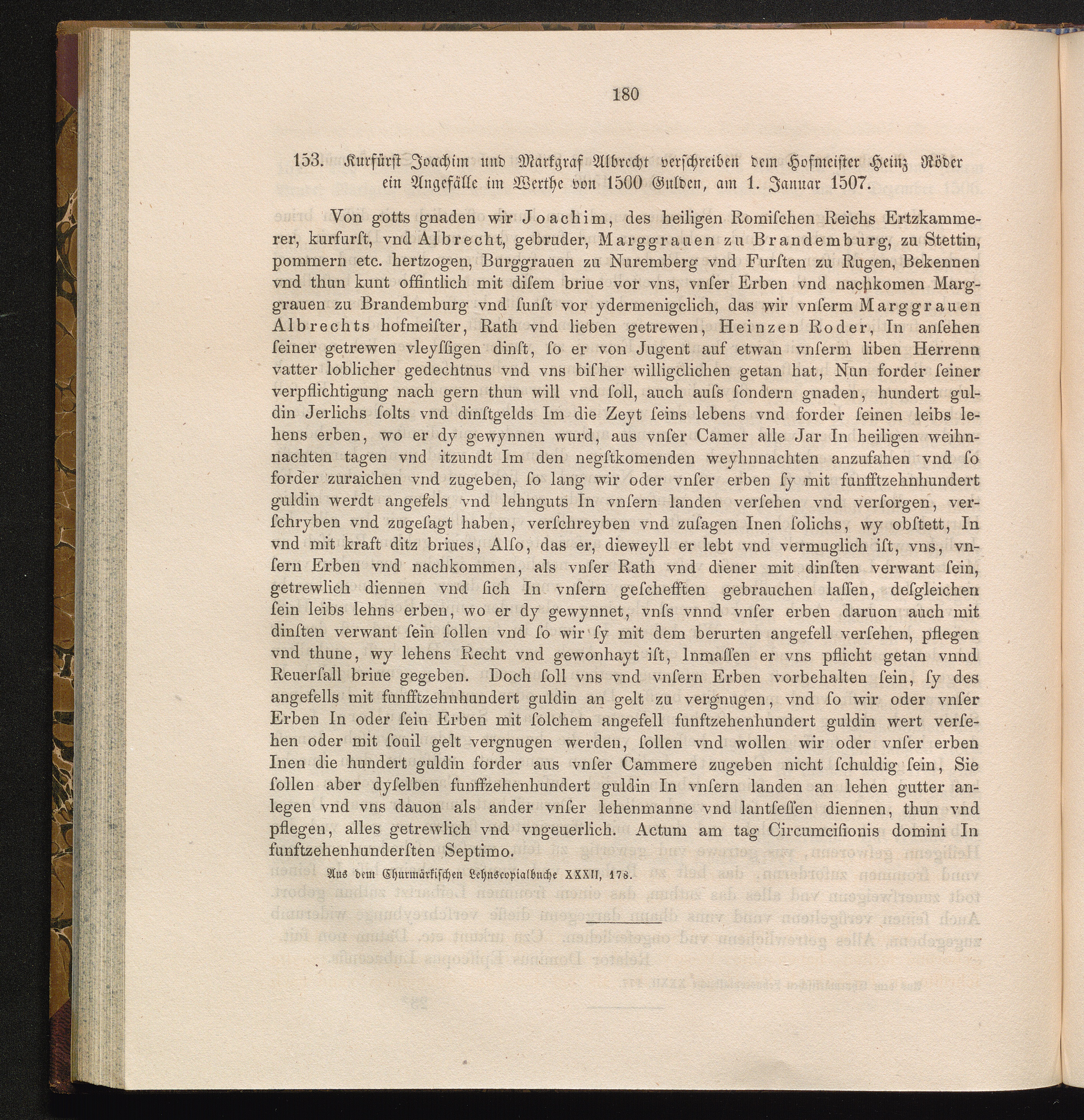 153. Kurfürst Joachim und Markgraf Albrecht verschreiben dem Hofmeister Heinz Röder[...]