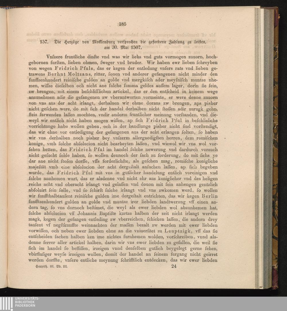 157. Die Herzöge von Mecklenburg versprechen die geforderte Zahlung zu leisten, am[...]