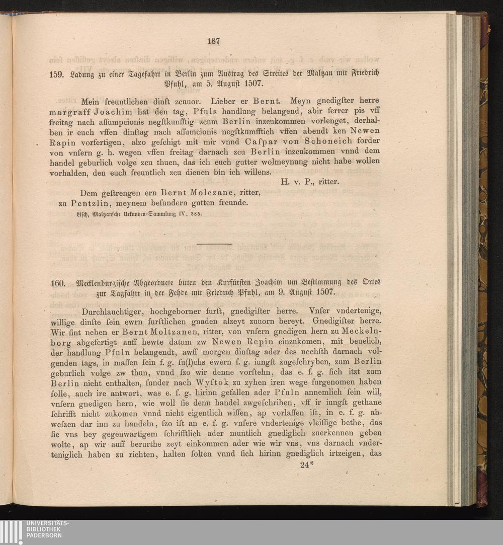 159. Ladung zu einer Tagefahrt in Berlin zum Austrag des Streites der Maltzan mit[...]