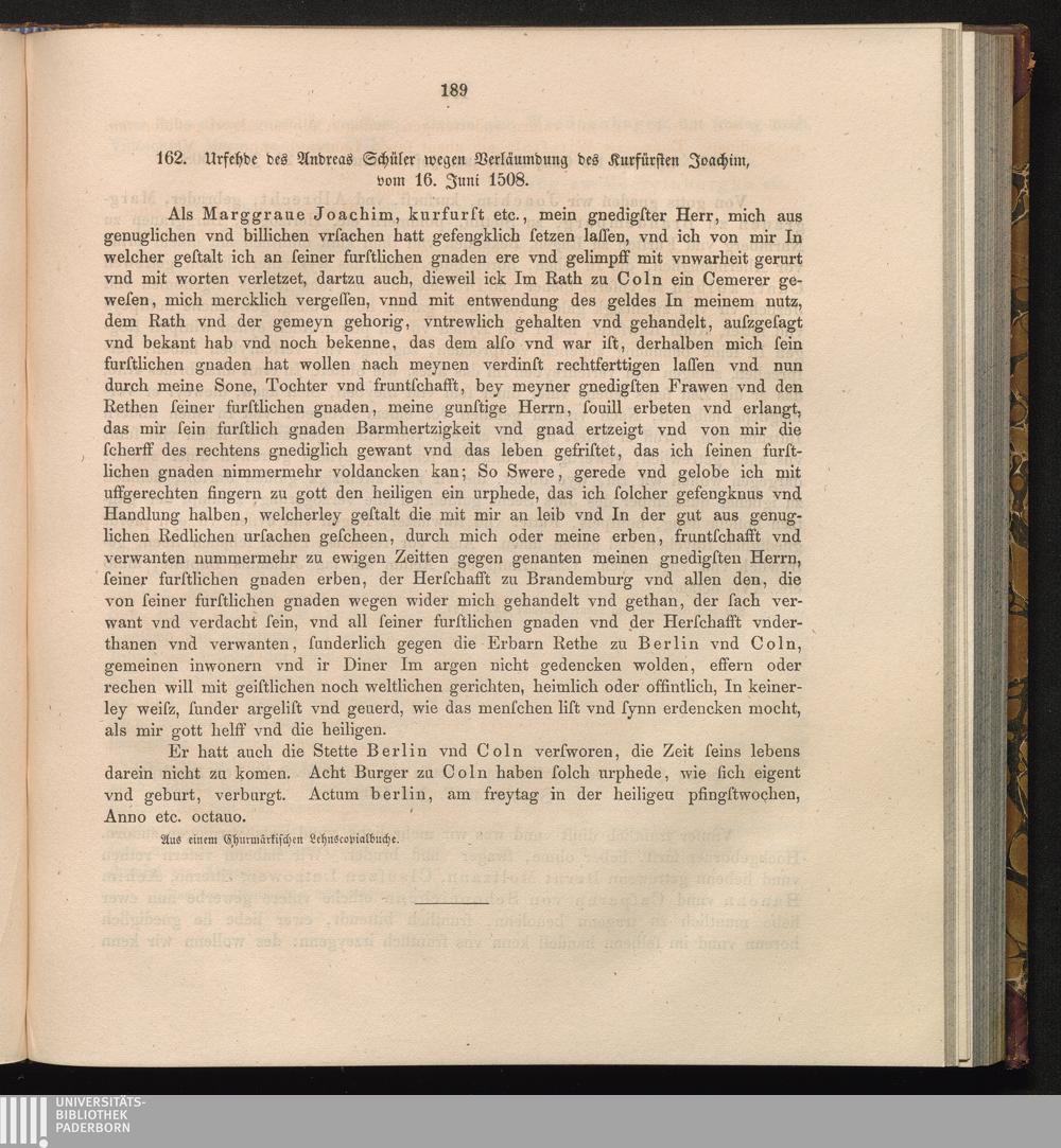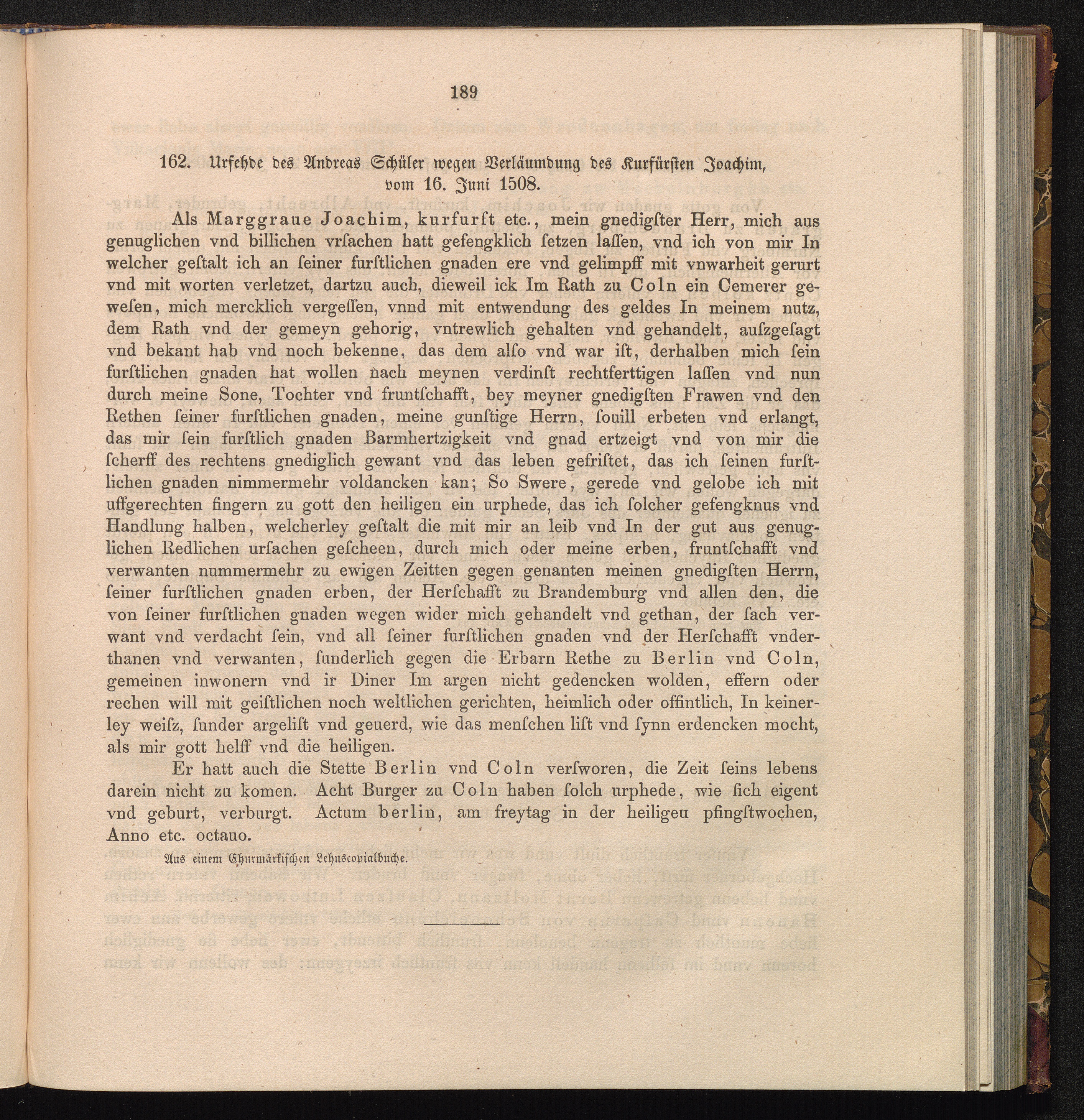 162. Urfehde des Andreas Schüler wegen der Verläumdung des Kurfürsten Joachim, vom[...]