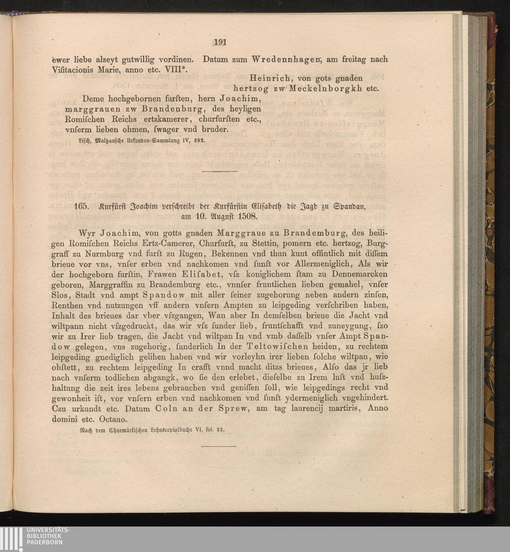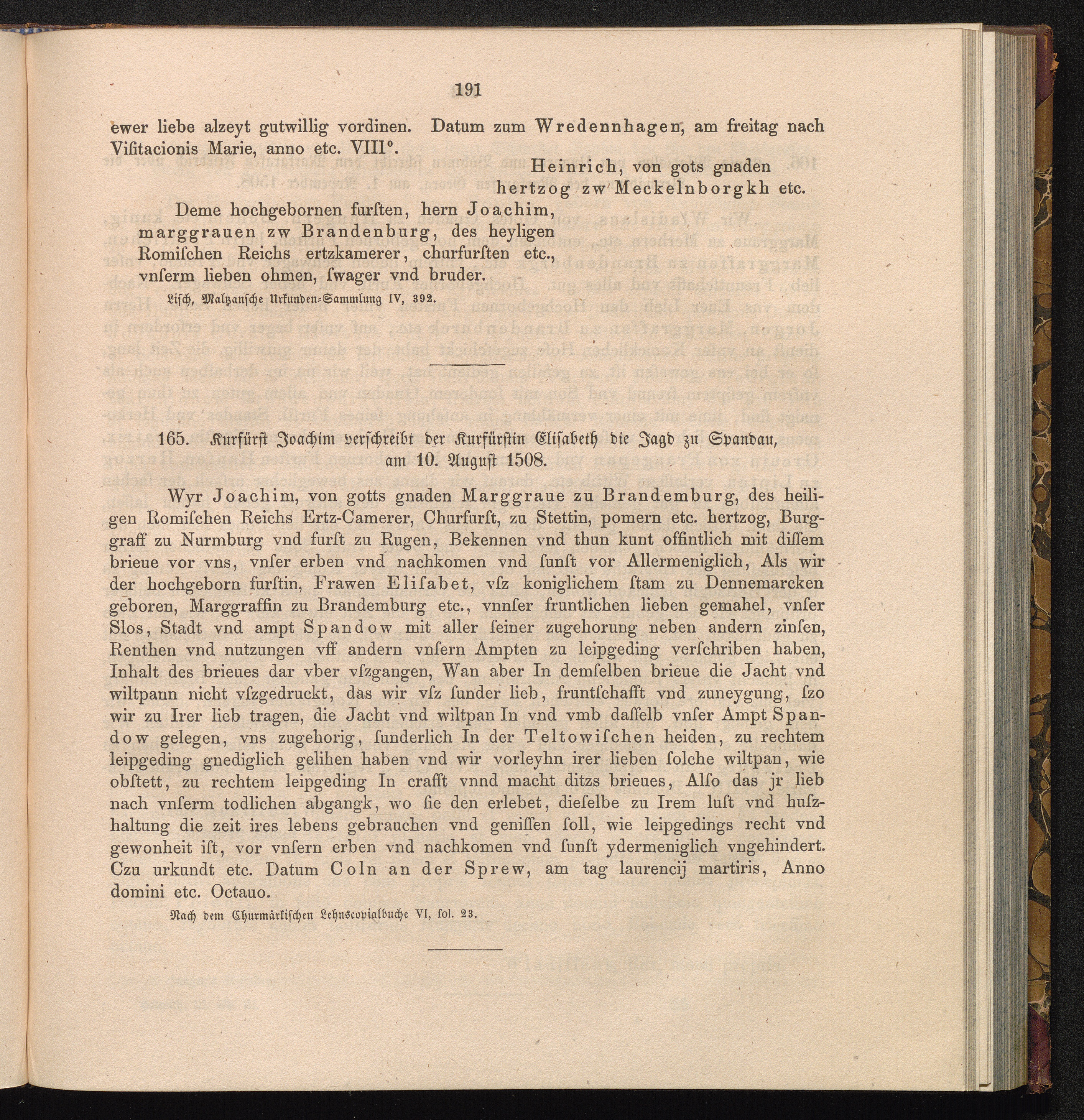 165. Kurfürst Joachim verschreibt der Kurfürstin Elisabeth die Jagd zu Spandau, am[...]