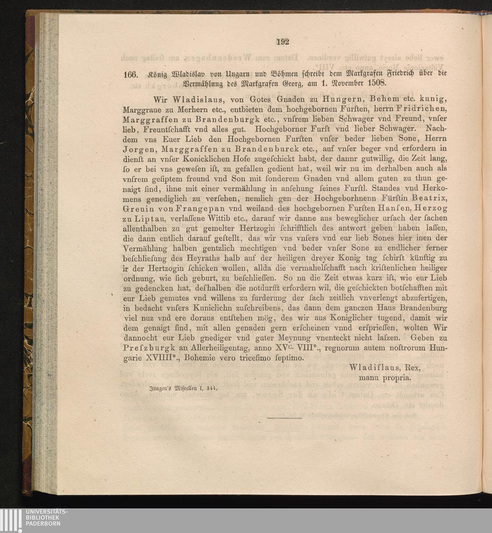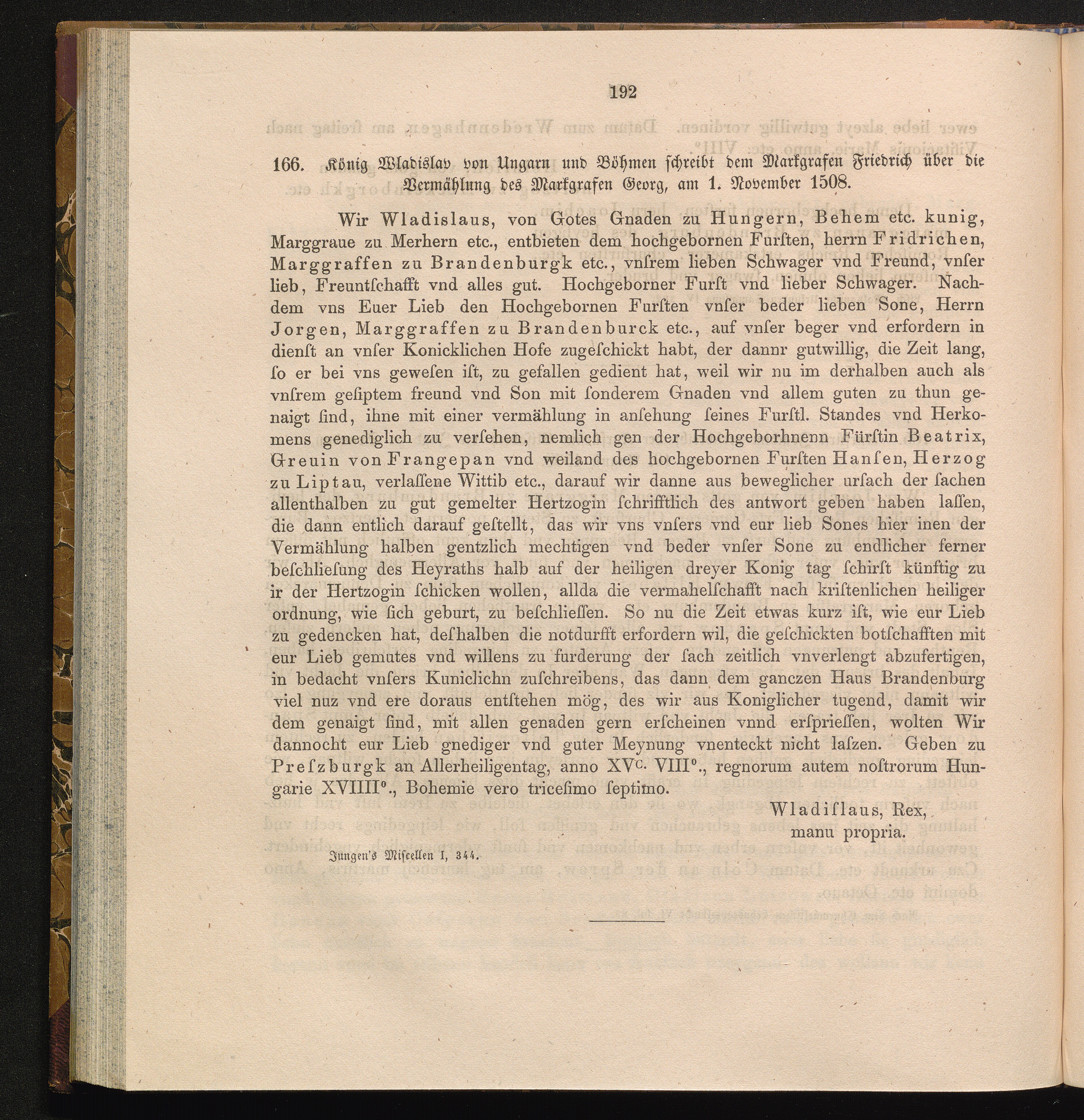 166. König Wladislav von Ungarn und Böhmen schreibt dem Markgrafen Friedrich über[...]