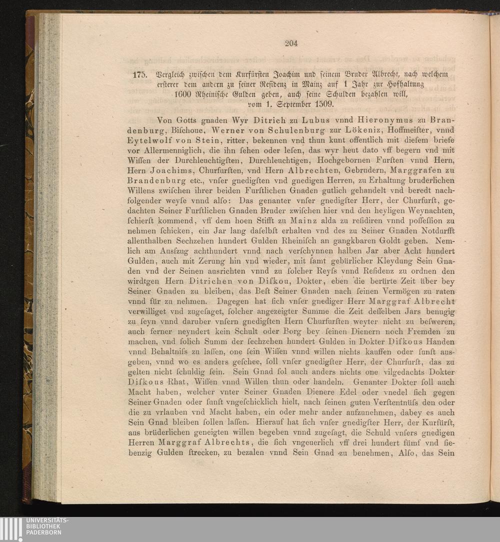 175. Vergleich zwischen dem Kurfürsten Joachim und seinem Bruder Albrecht, nach welchem[...]