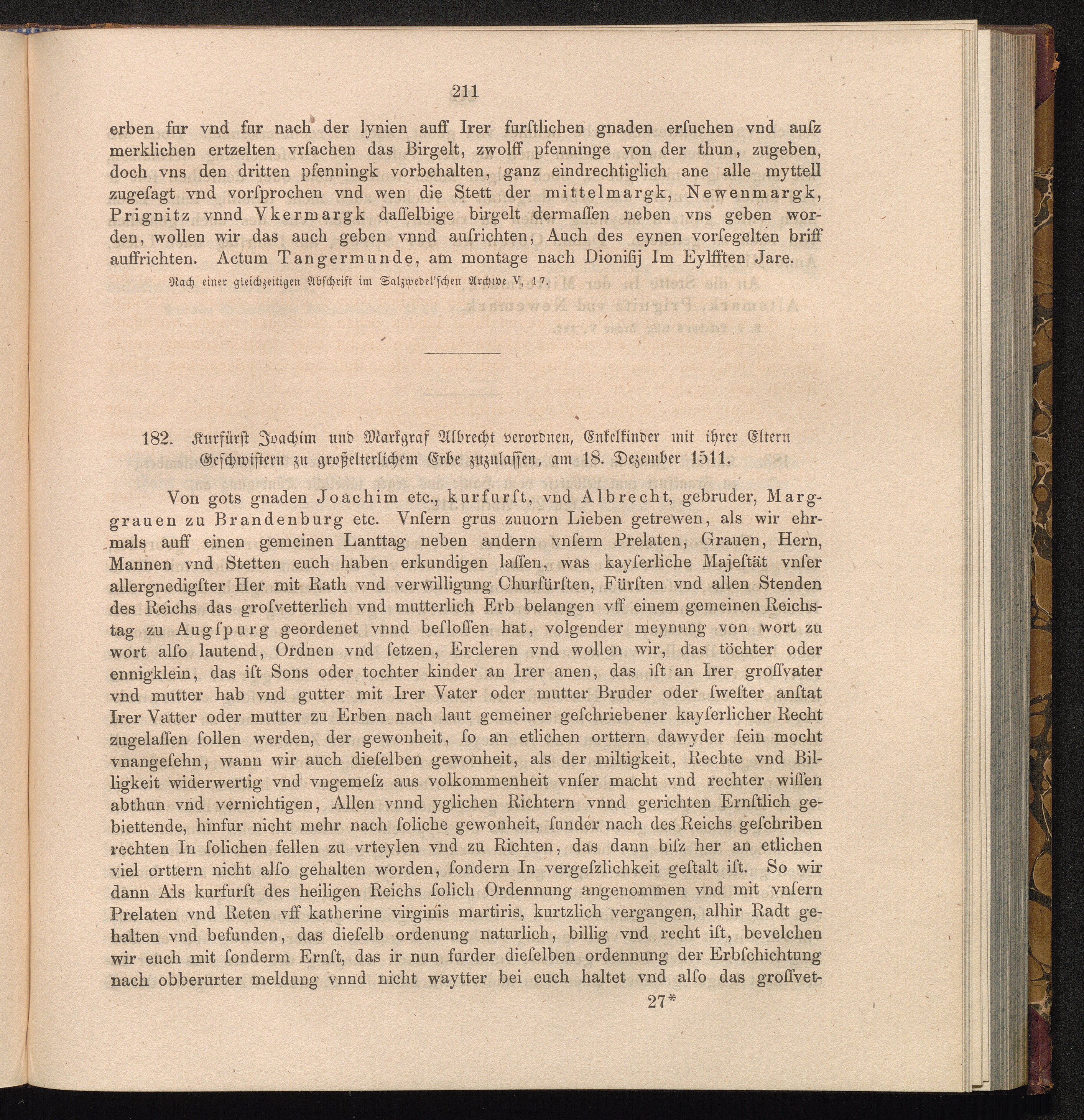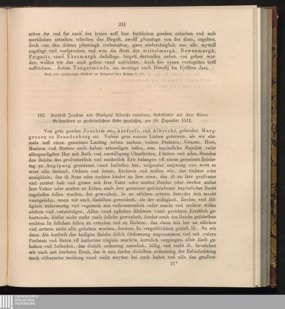 182. Kurfürst Joachim und Markgraf Albecht verordnen, Enkelkinder mit ihrer Eltern[...]
