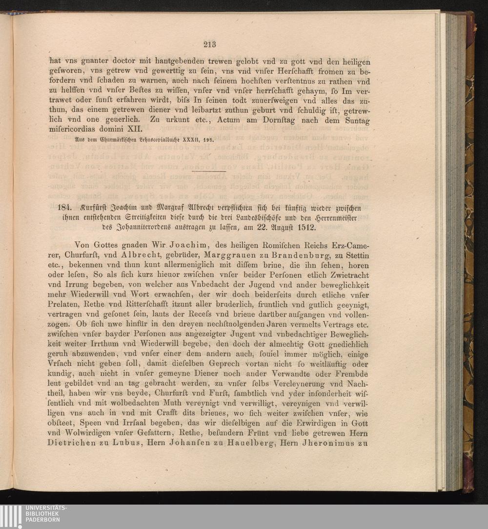 184. Kurfürst Joachim und Margraf[sic!] Albrecht verpflichten sich bei künftig wieder[...]