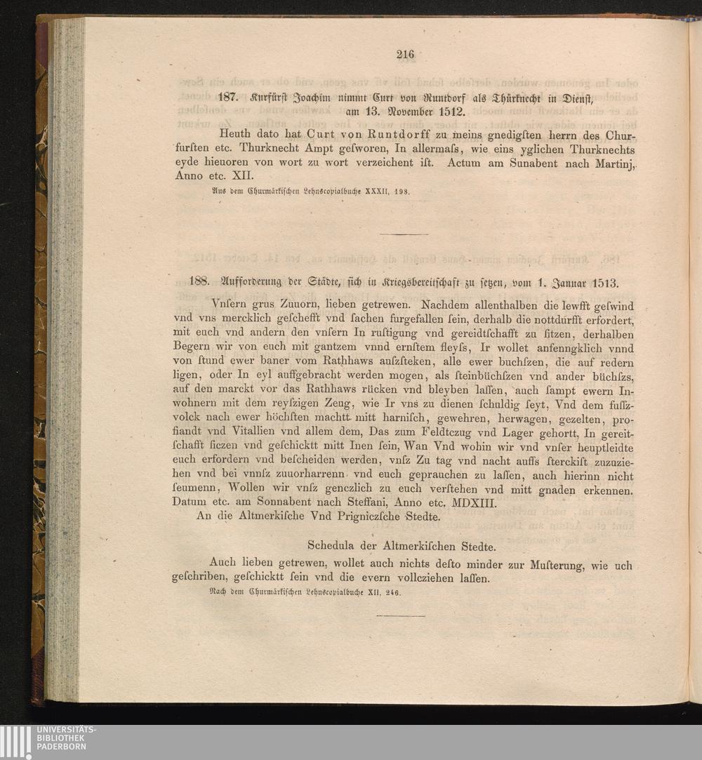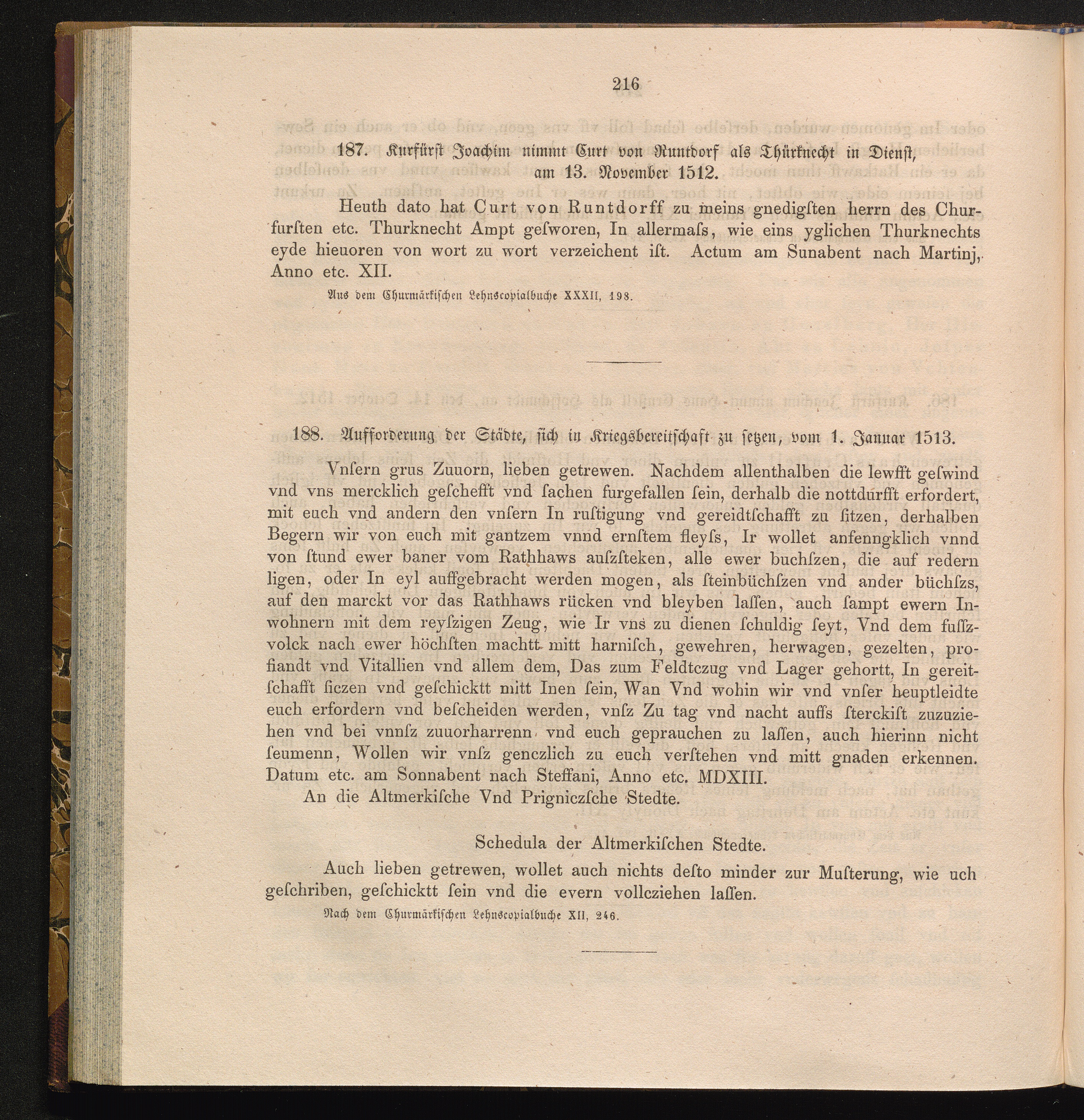 187. Kurfürst Joachim nimmt Curt Runtdorf als Thürknecht in Dienst, am 13. November[...]