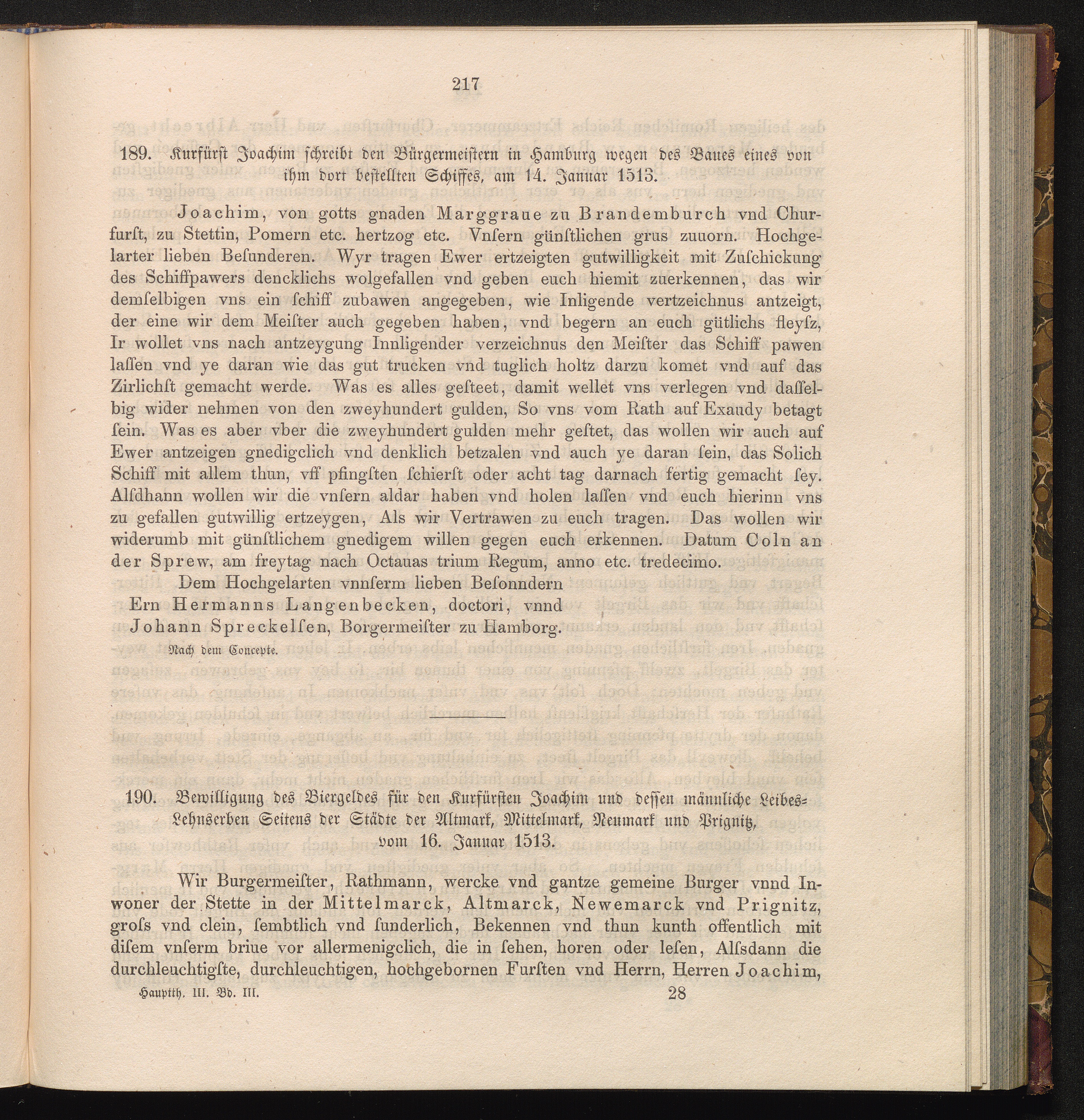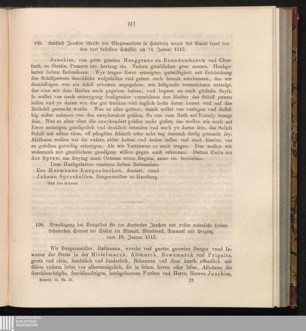189. Kurfürst Joachim schreibt den Bürgermeistern in Hamburg wegen des Bauers eines[...]