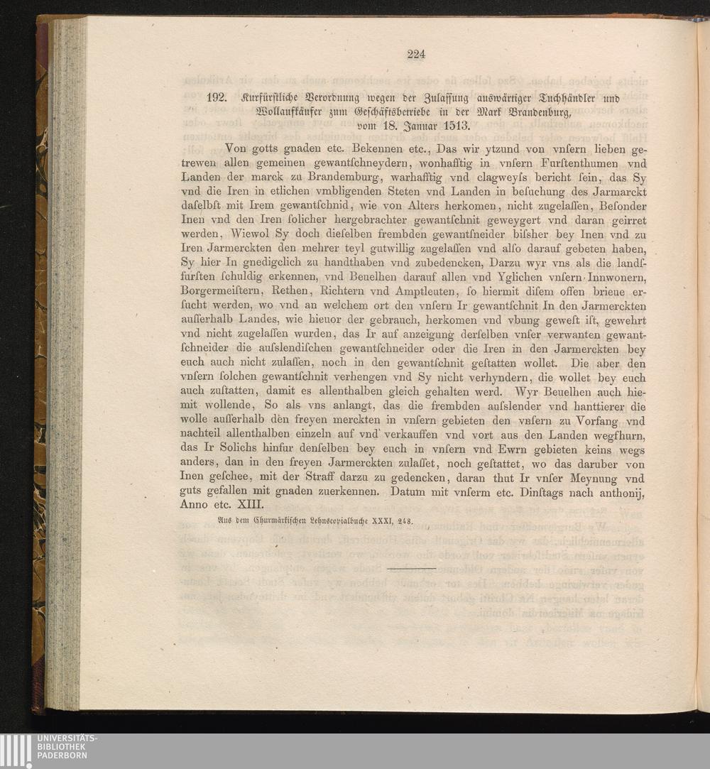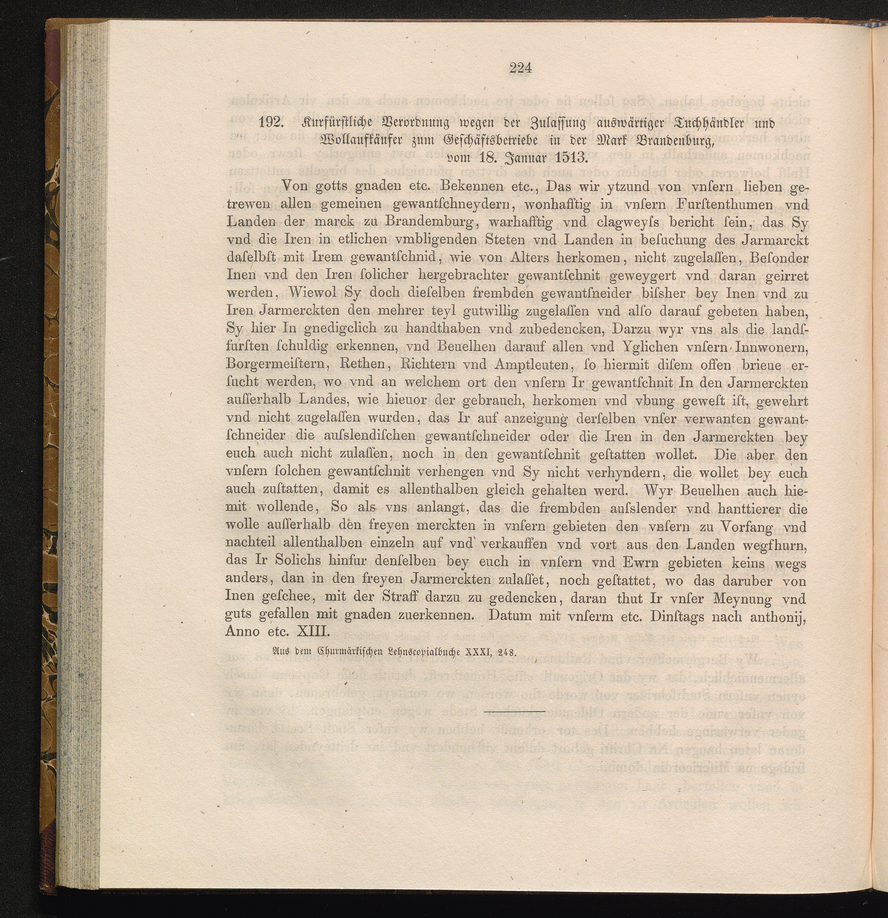 192. Kurfürstliche Verordnung wegen der Zulassung auswärtiger Tuchhändler und Wollaufkäufer[...]