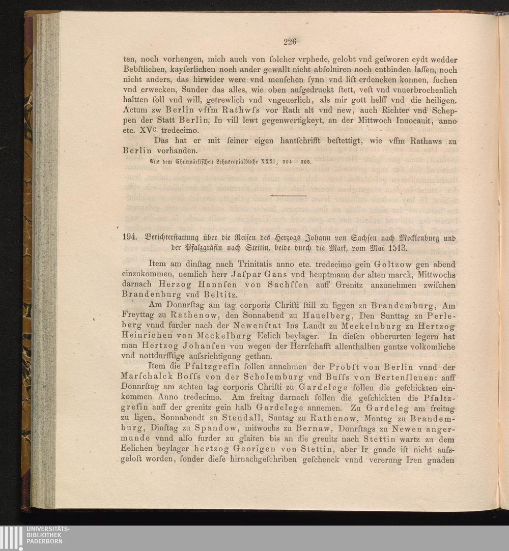 194. Berichterstattung über die Reisen des Herzogs Johann von Sachsen nach Mecklenburg[...]
