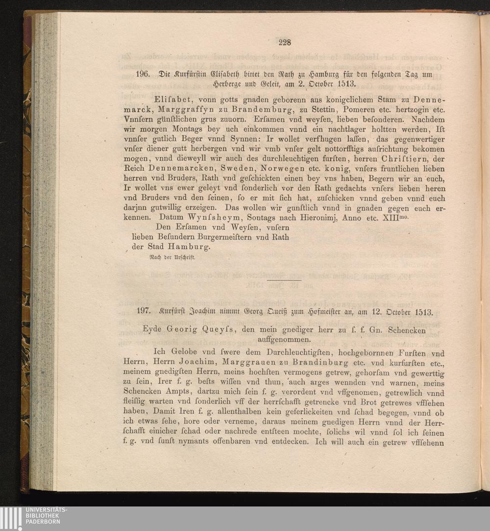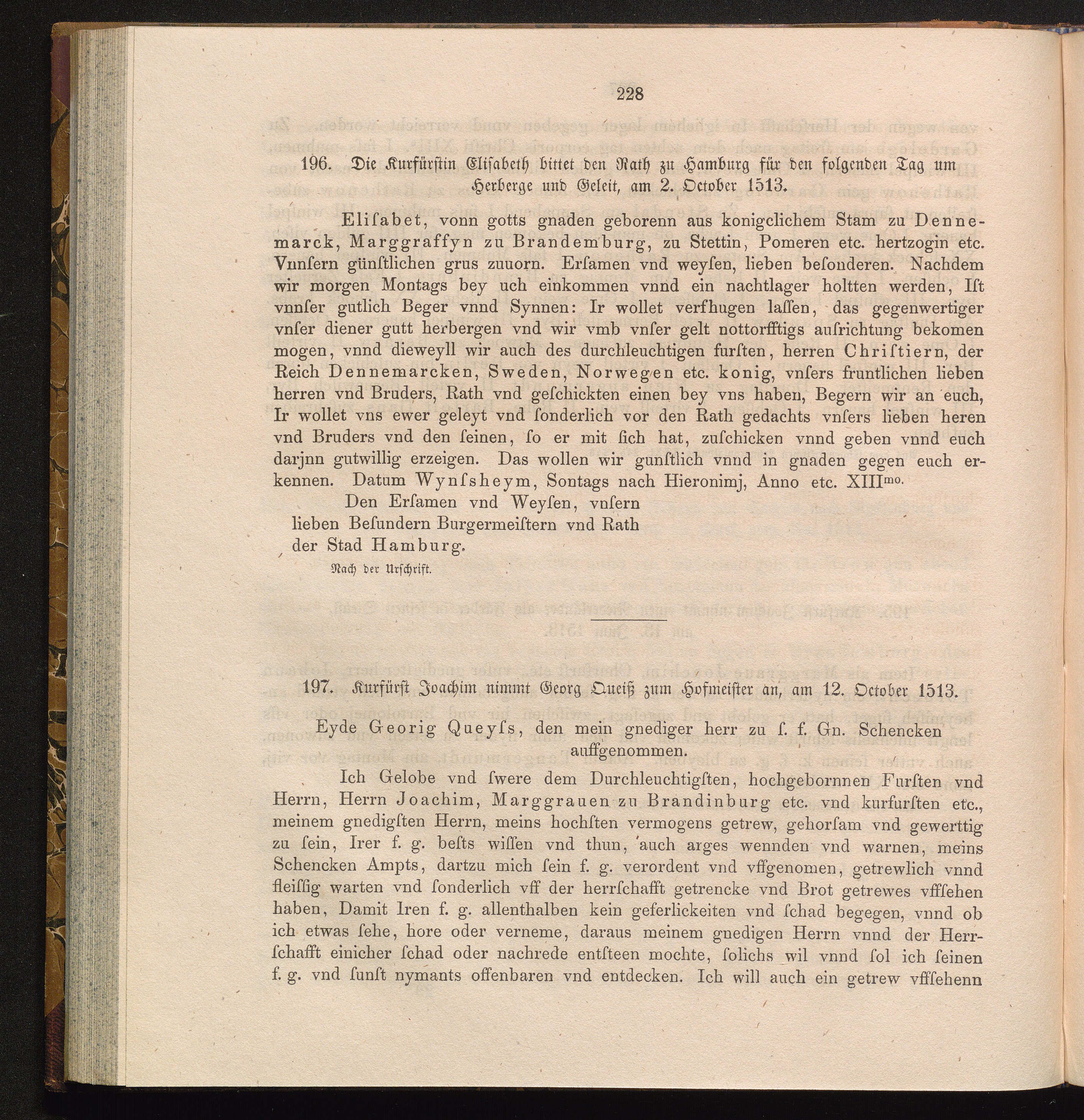 196. Die Kurfürstin Elisabeth bittet den Rath zu Hamburg für den folgenden Tag um[...]