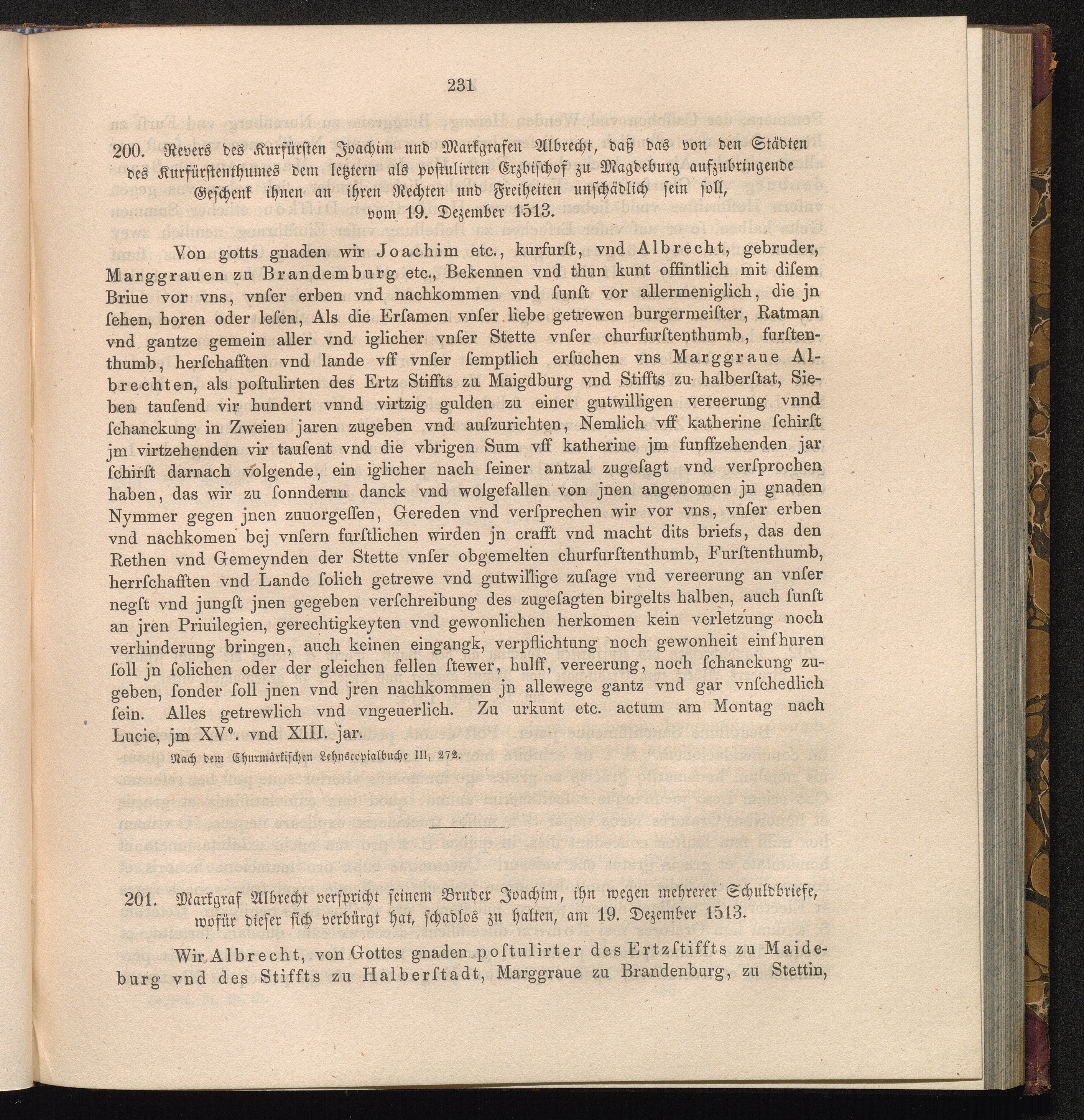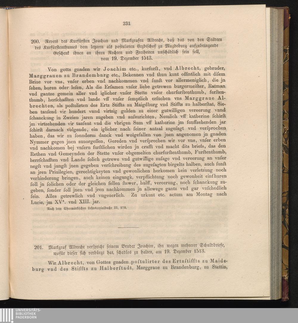 200. Revers des Kurfürsten Joachim und Markgrafen Albrecht, daß das von den Städten[...]