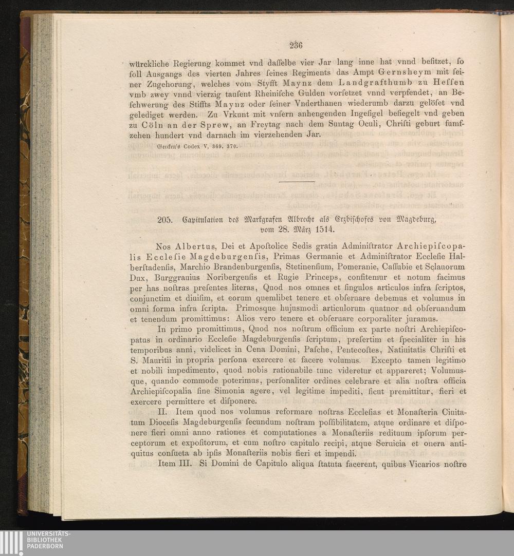 205. Capitulation des Markgrafen Albrecht als Erzbischofes von Magdeburg, vom 28.[...]