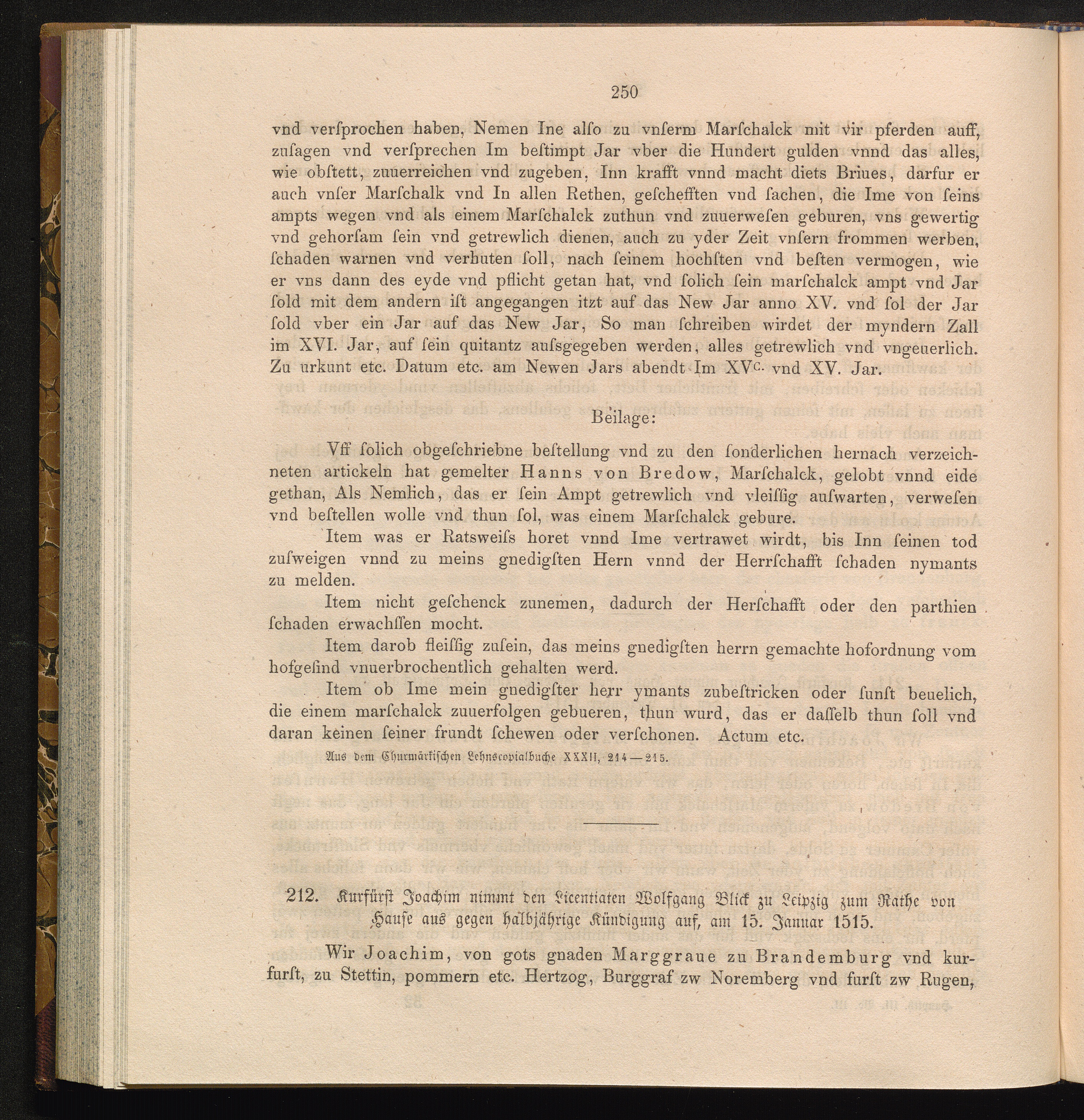212. Kurfürst Joachim nimmt den Licentiaten Wolfgang Blick zu Leipzig zum Rathe von[...]