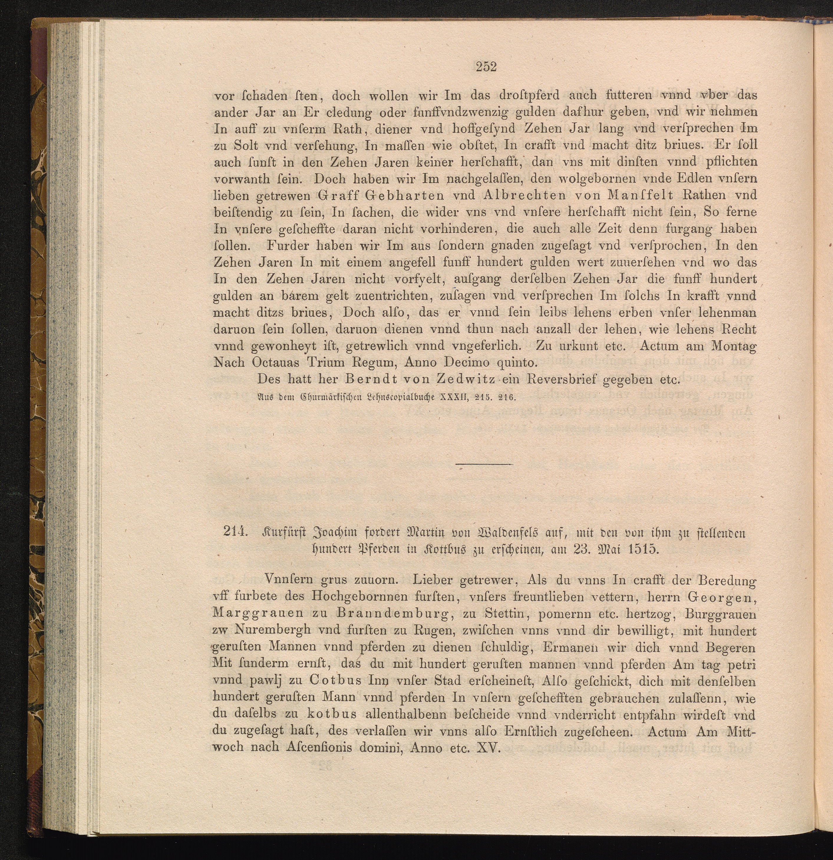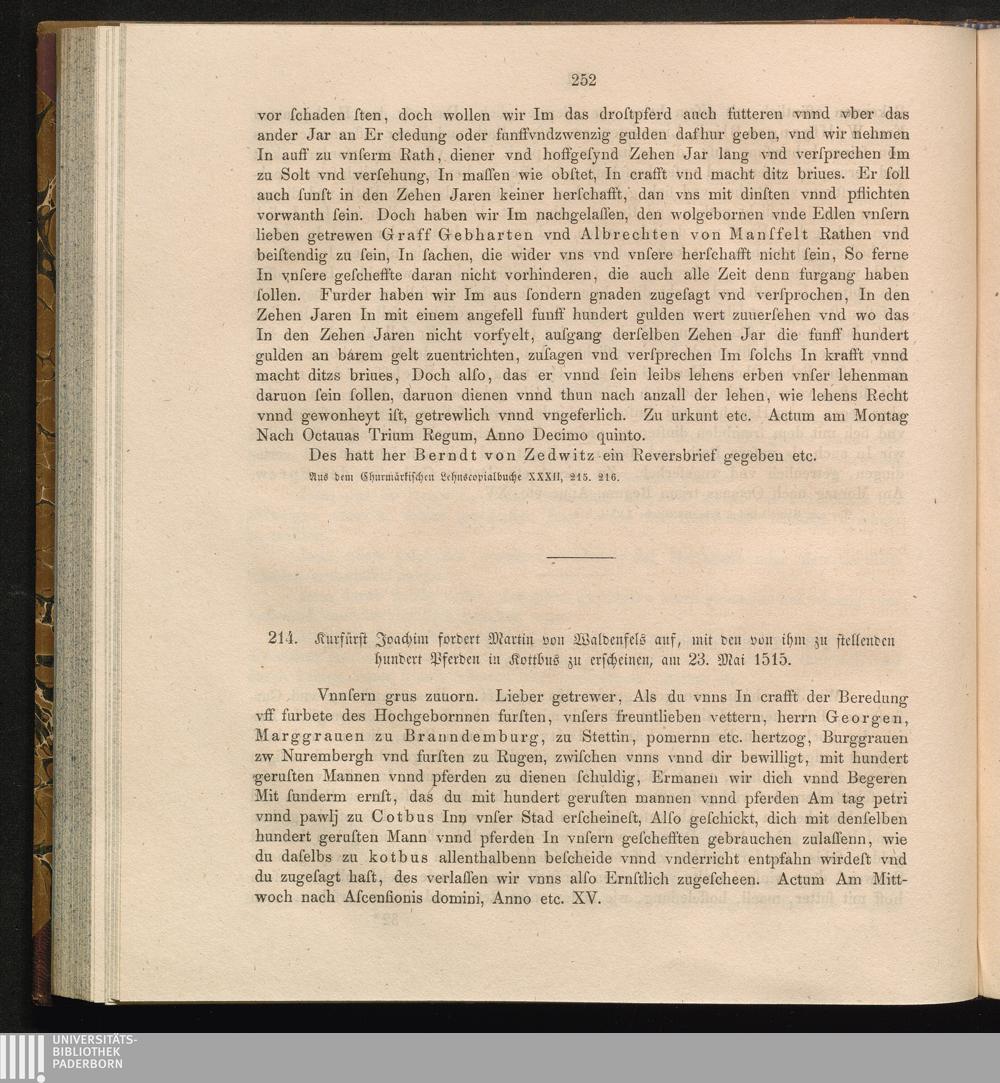 214. Kurfürst Joachim fordert Martin von Waldenfels auf, mit den von ihm zu stellenden[...]