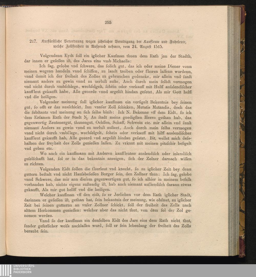 217. Kurfürstliche Verordnung wegen jährlicher Vereidigung der Kaufleute und Fuhrleute,[...]