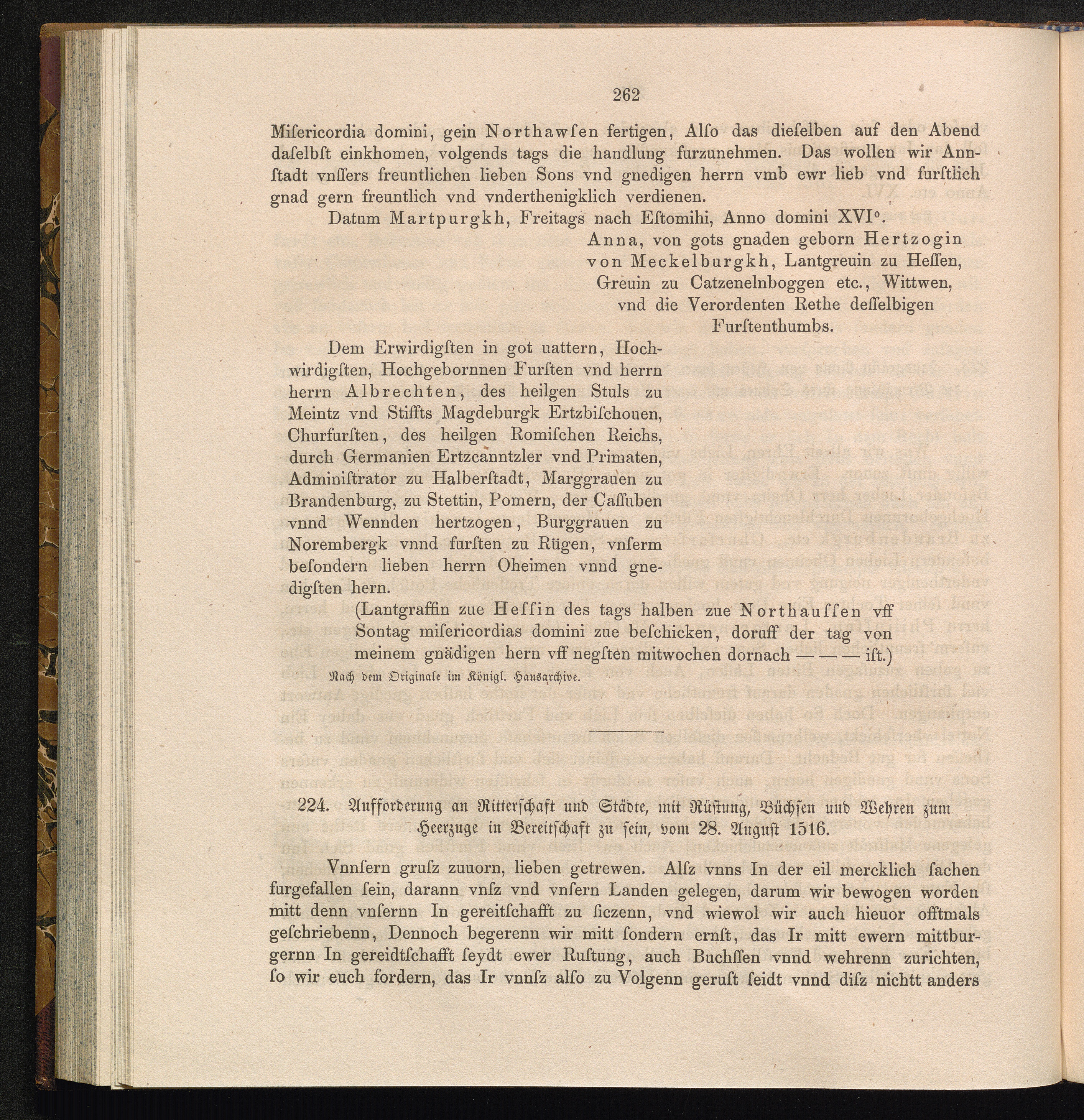224. Aufforderung an Ritterschaft und Städte, mit Rüstung, Büchsen und Wehren zum[...]