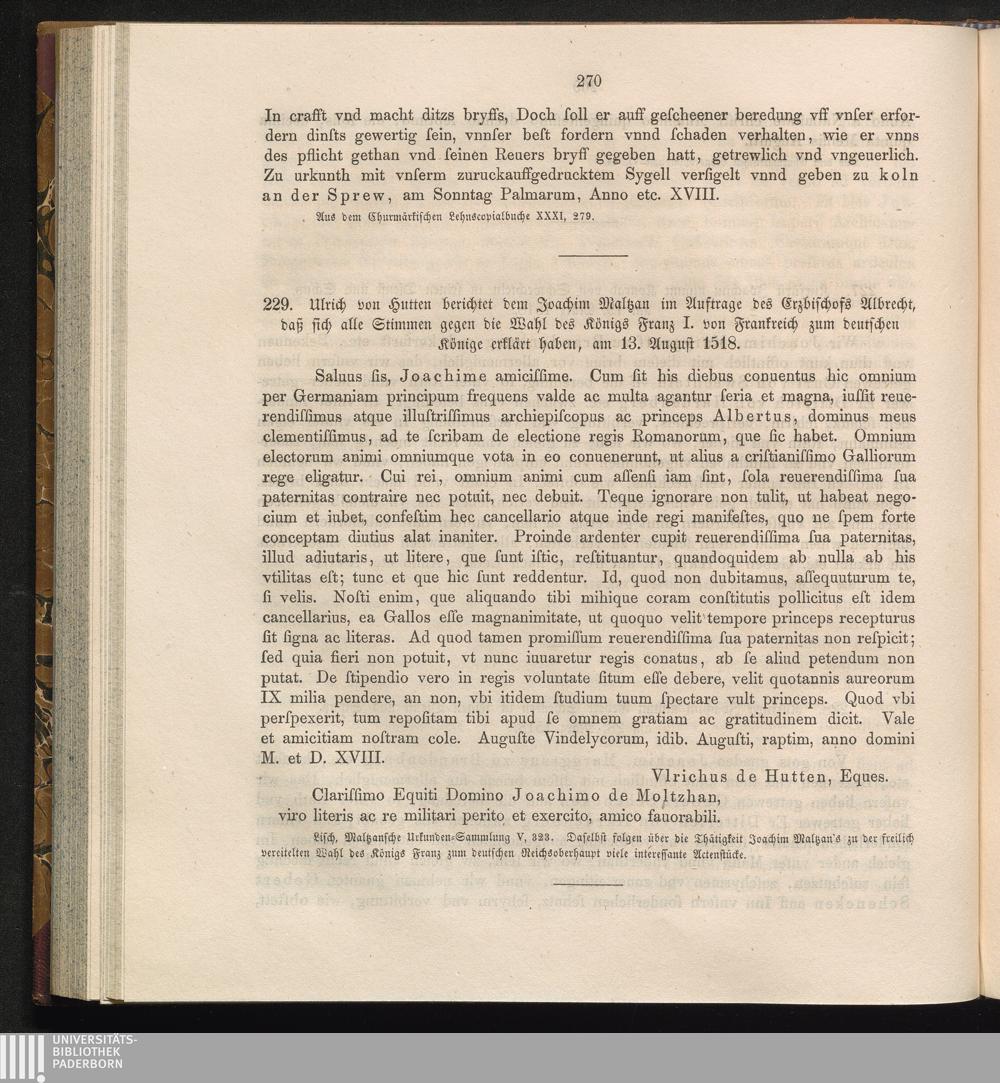 229. Ulrich von Hutten berichtet dem Joachim Maltzan im Auftrage des Erzbischofs[...]