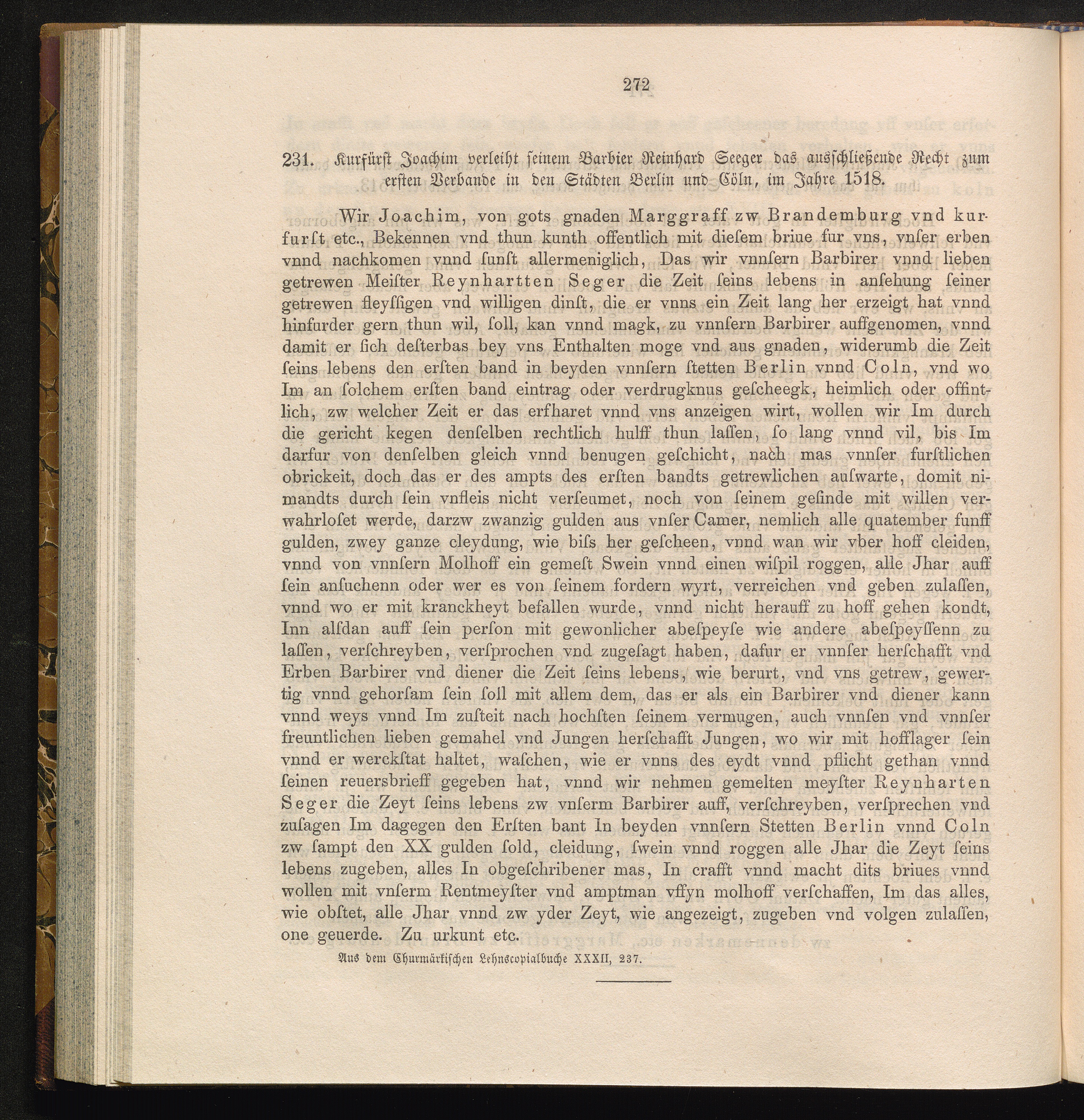 231. Kurfürst Joachim verleiht seinem Barbier Reinhard Seeger das ausschließende[...]