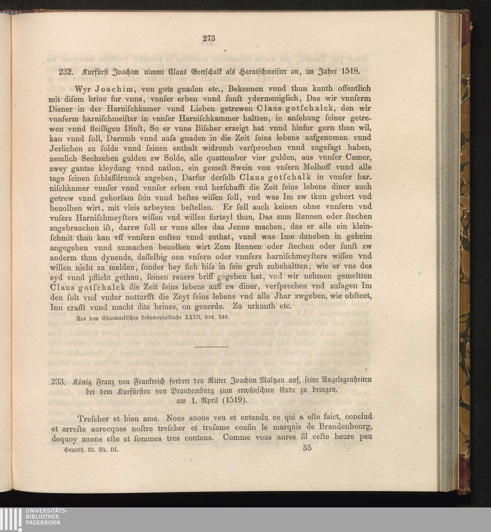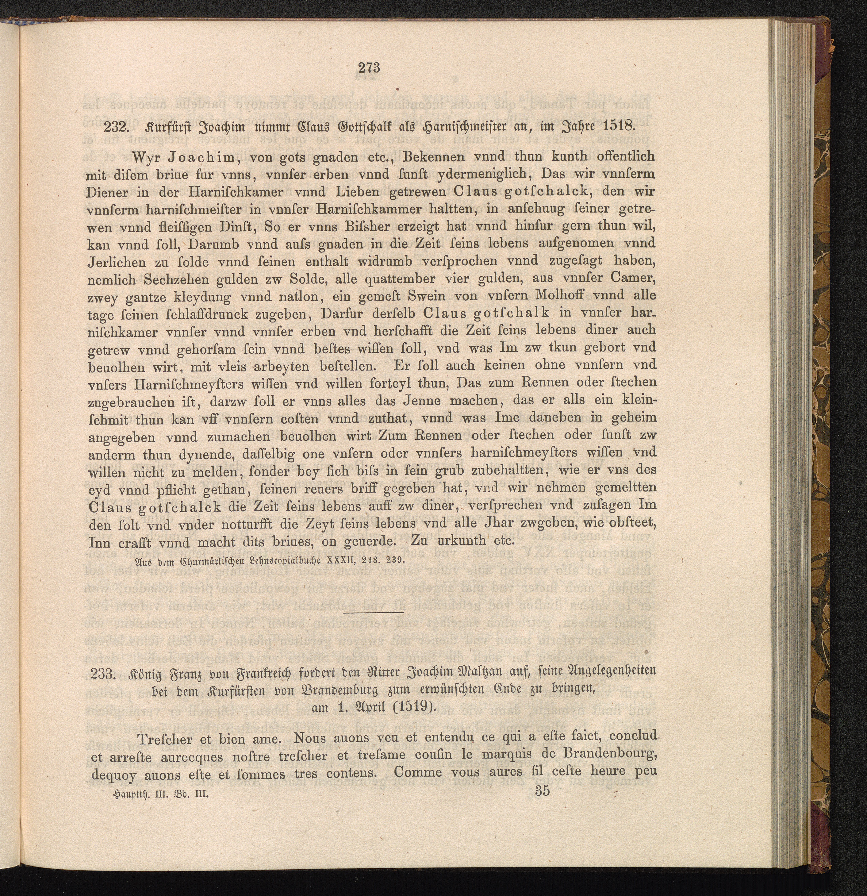 232. Kurfürst Joachim nimmt Claus Gottschalk als Harnischmeister an, im Jahre 15[...]
