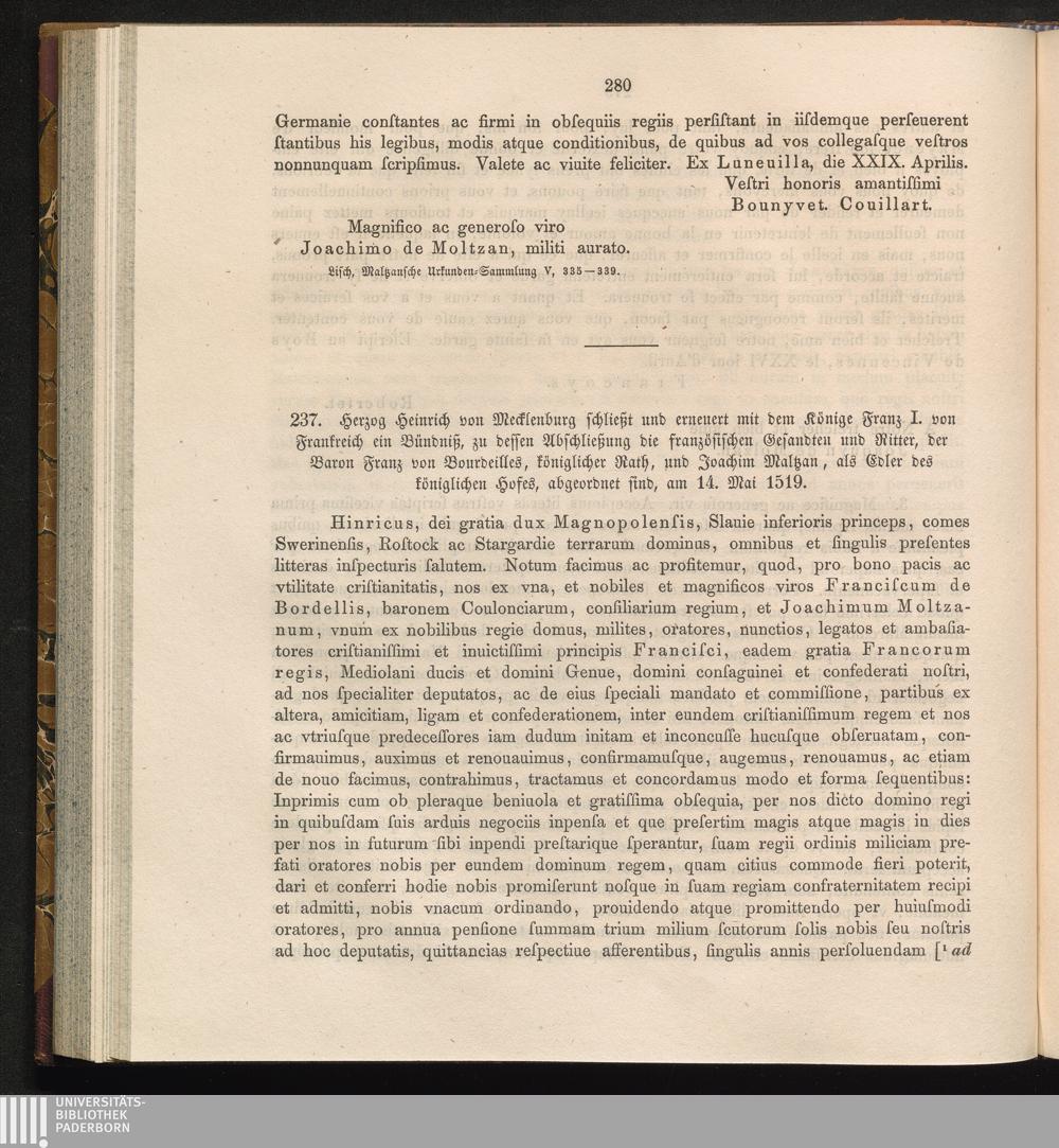 237. Herzog Heinrich von Mecklenburg shcließt und erneuert mit dem Könige Franz I.[...]