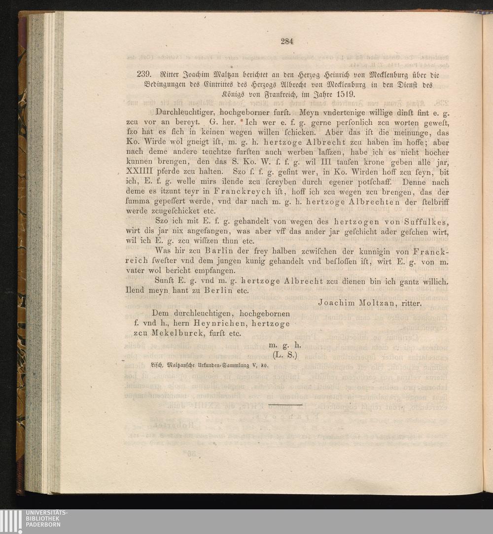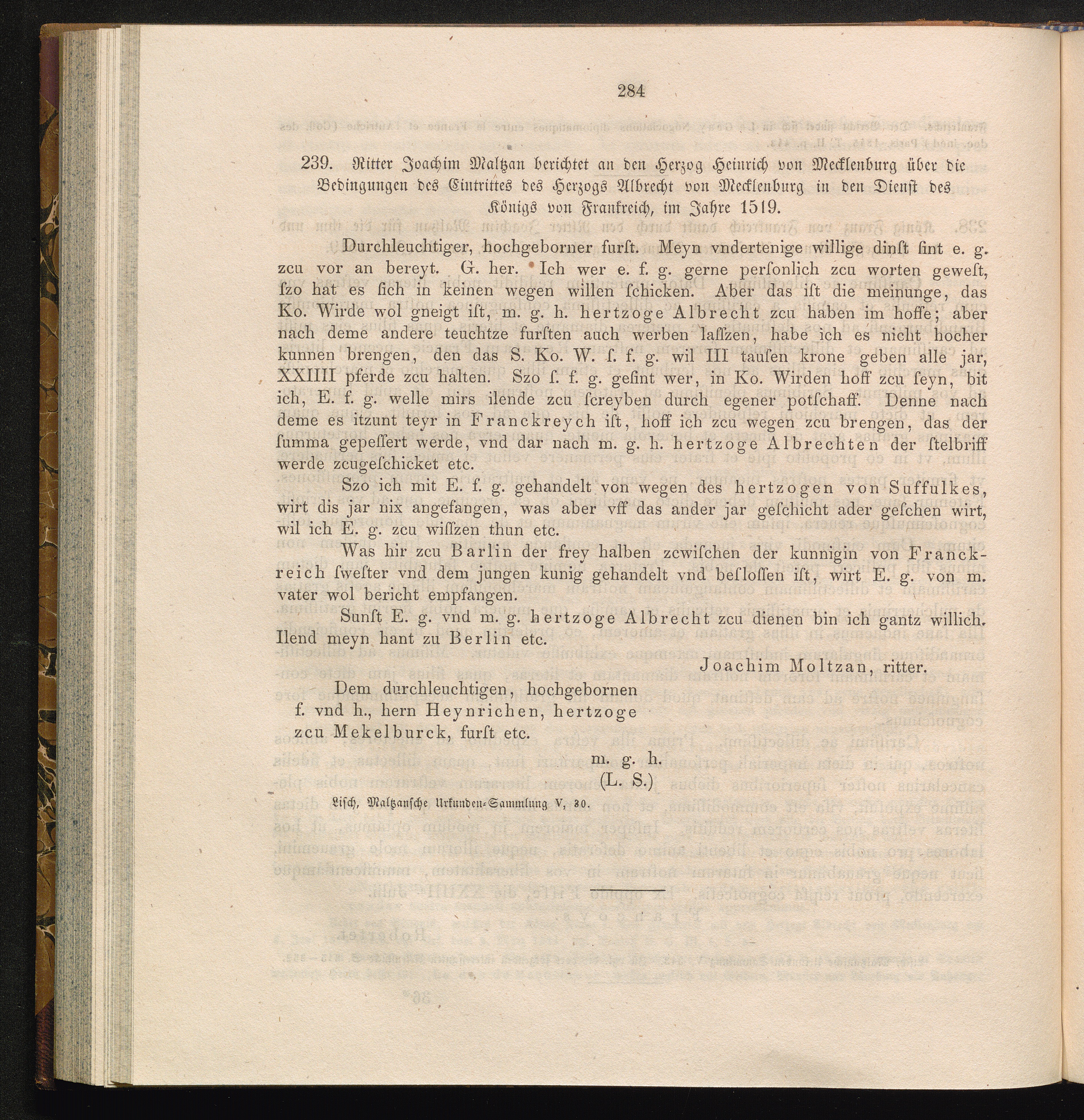 239. Ritter Joachim Maltzan berichtet an den Herzog Heinrich von Mecklenburg über[...]