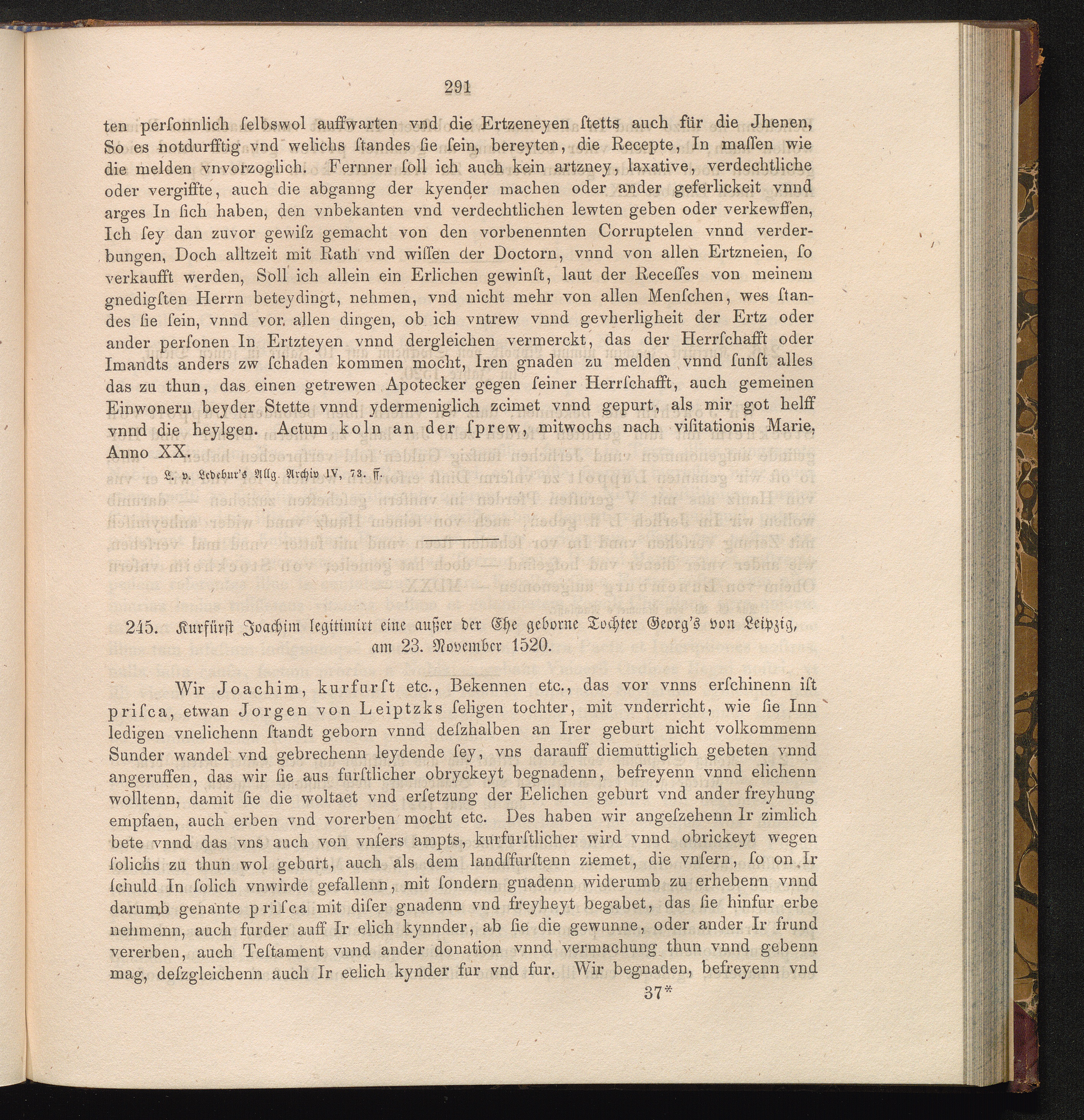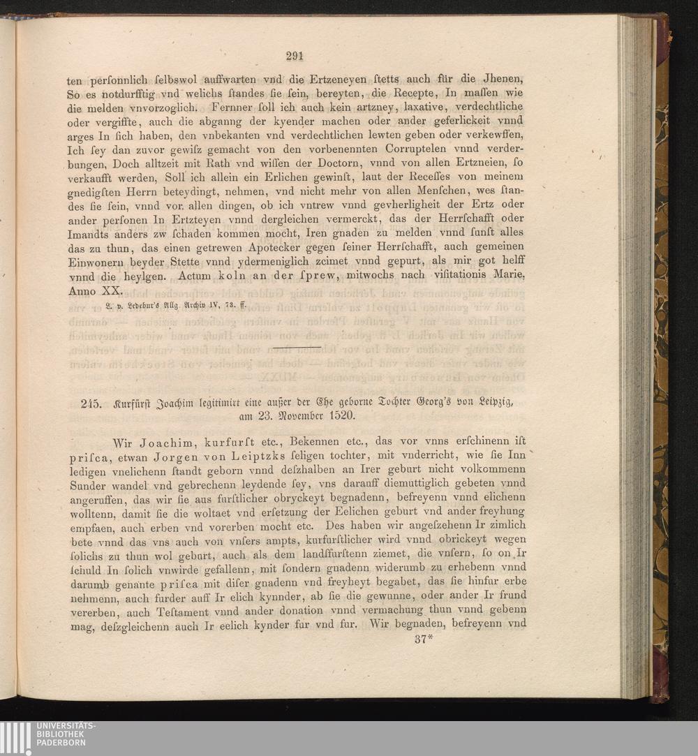 245. Kurfürst Joachim legitimirt eine außer der Ehe geborne Tochter Georg's von Leipzig,[...]