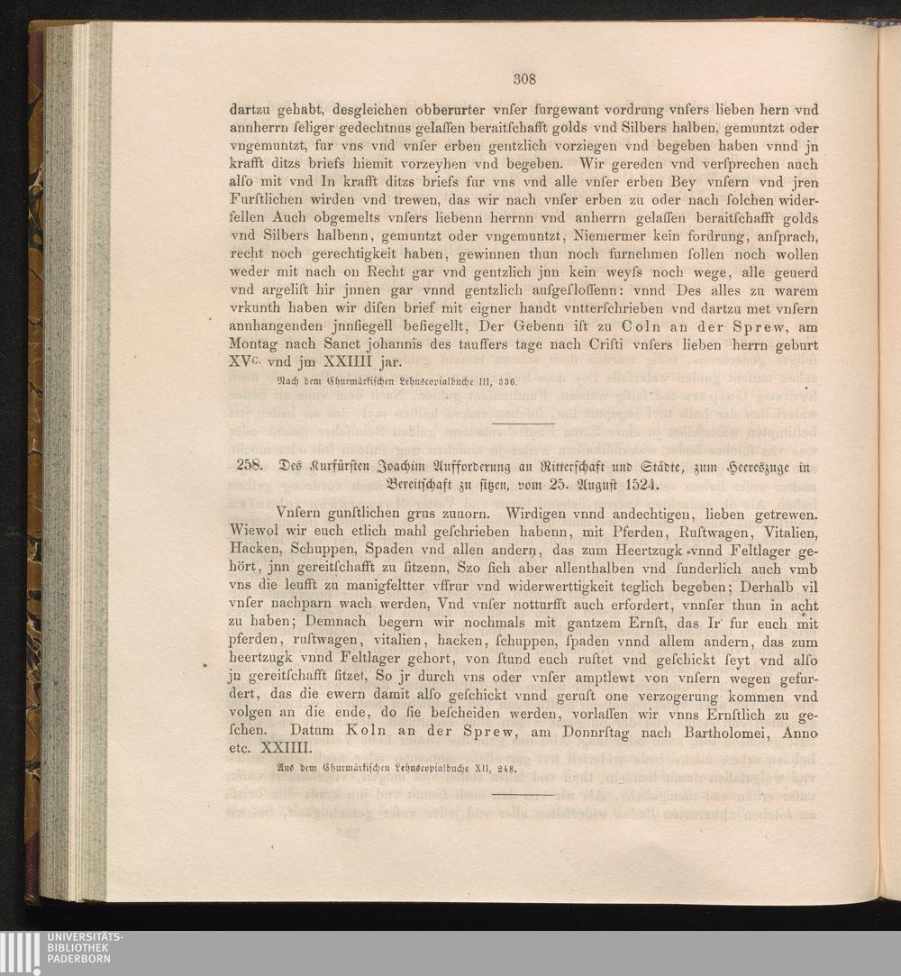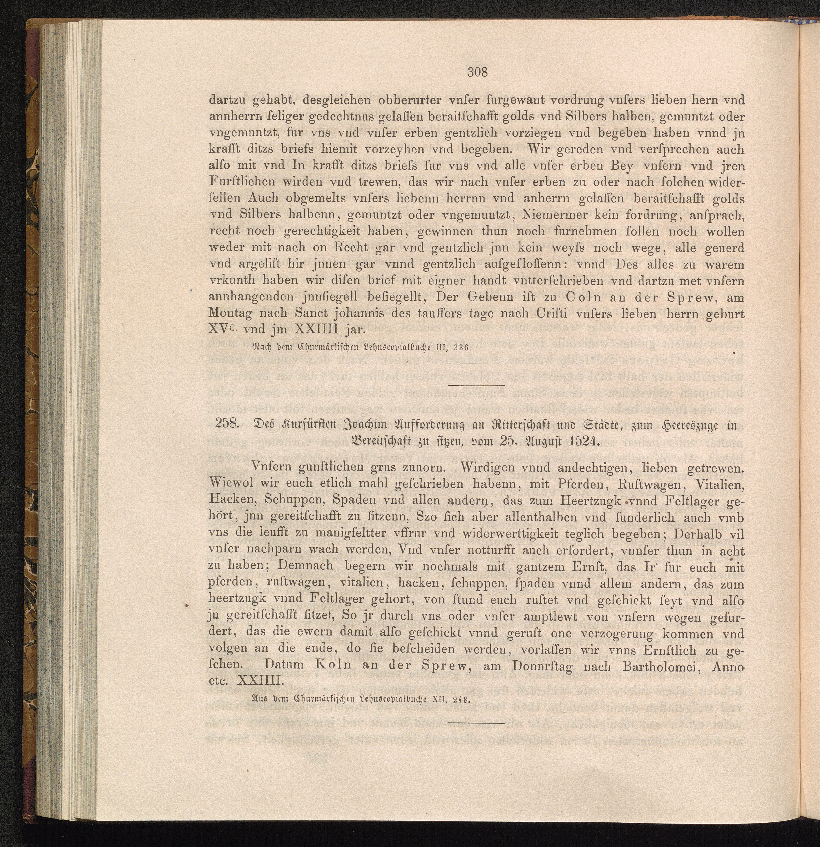 258. Des Kurfürsten Joachim Aufforderung an Ritterschaft und Städte, zum Heerzuge[...]