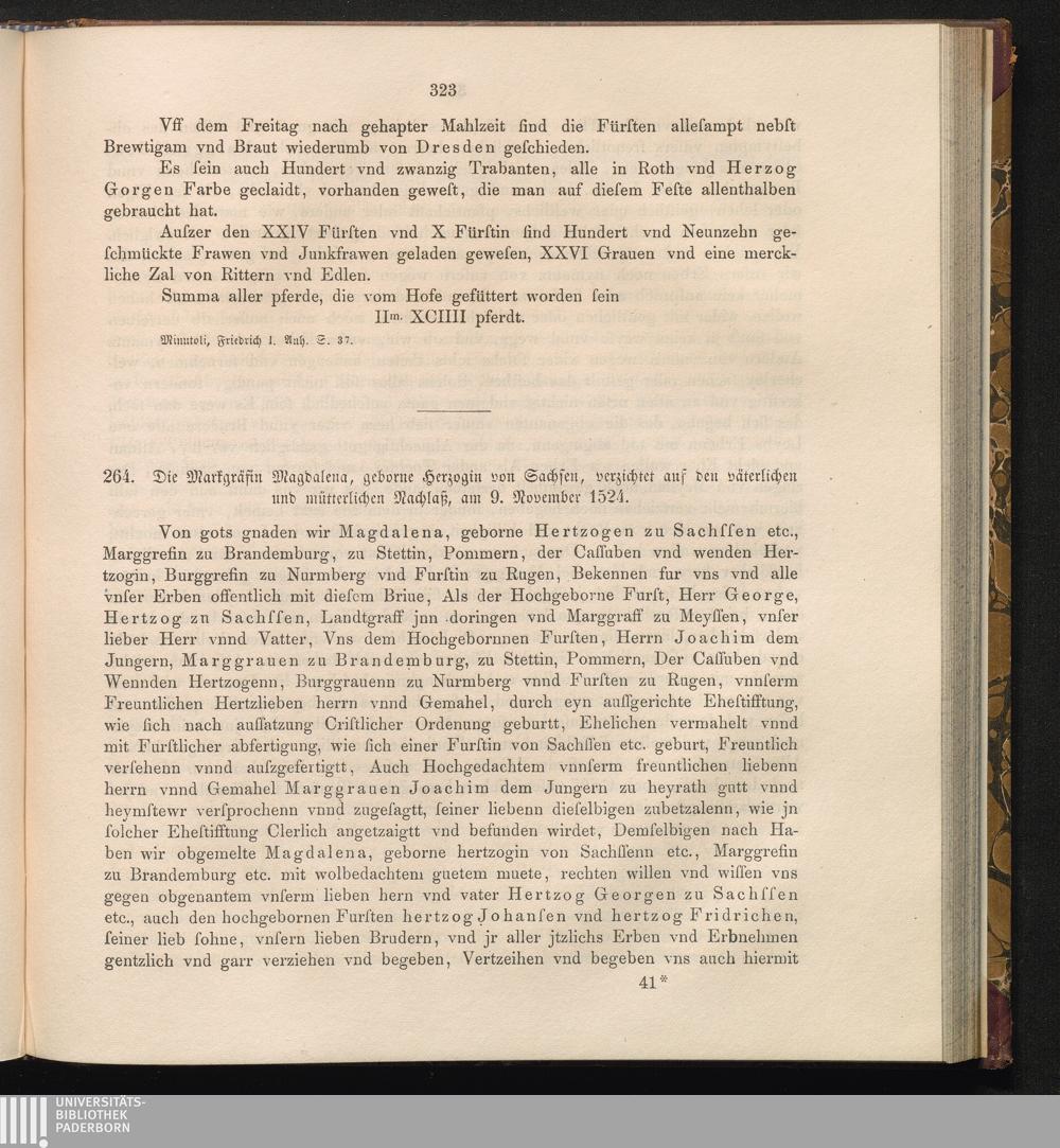 264. Die Markgräfin Magdalena, geborne Herzogin von Sachsen, verzichtet auf den väterlichen[...]