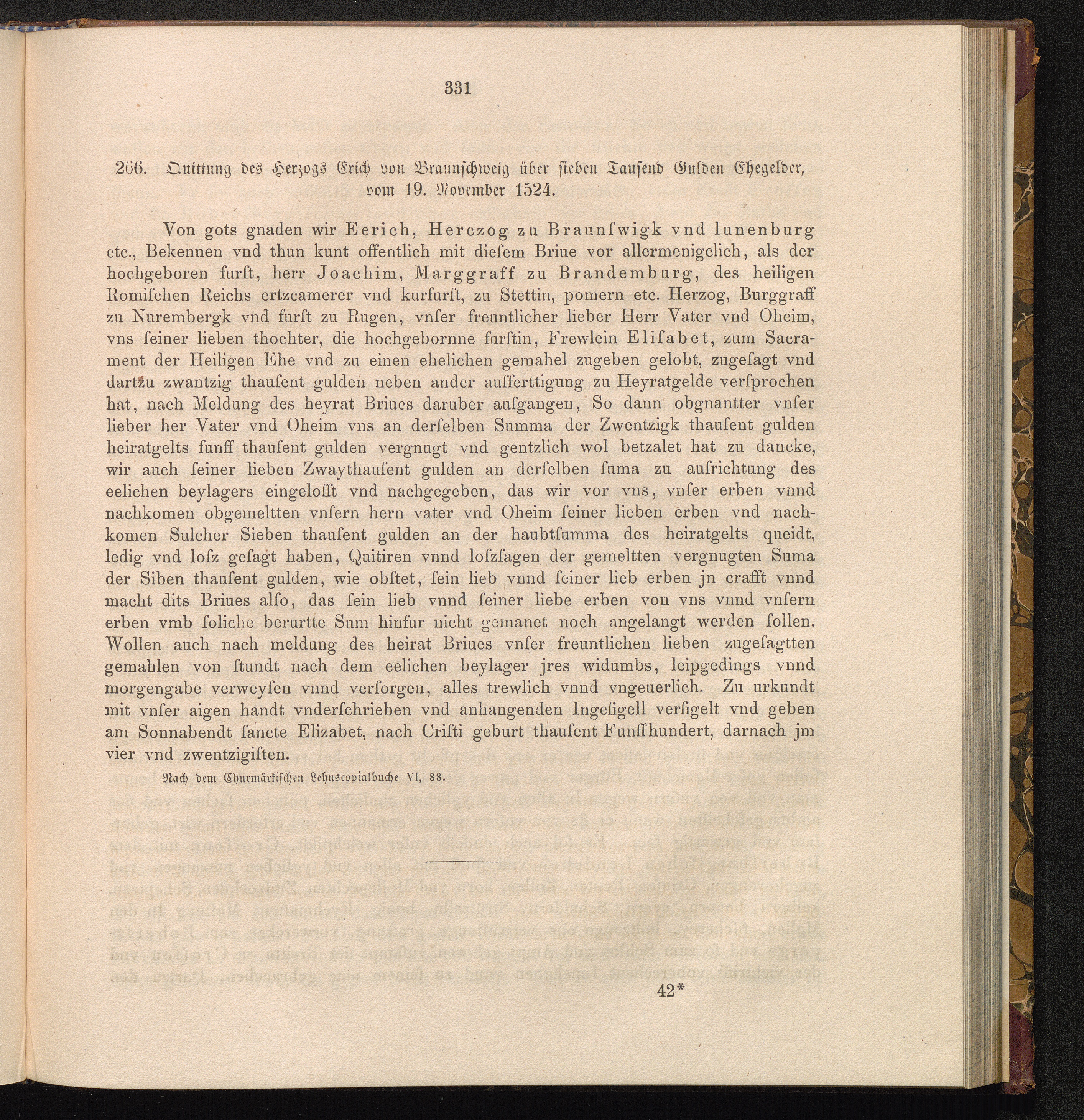 266. Quittung des Herzogs Erich von Braunschweig über sieben Tausend Gulden Ehegelder,[...]