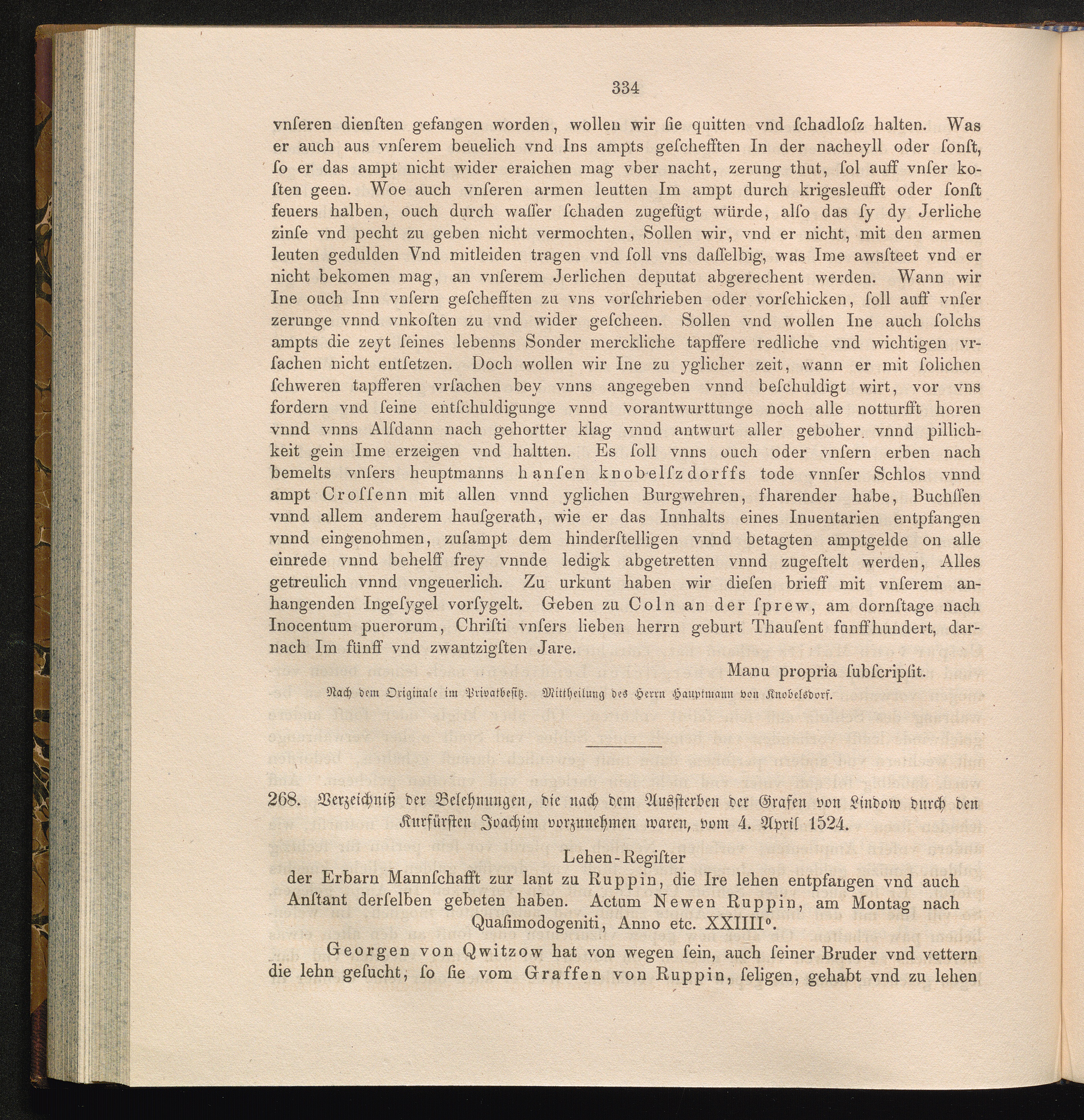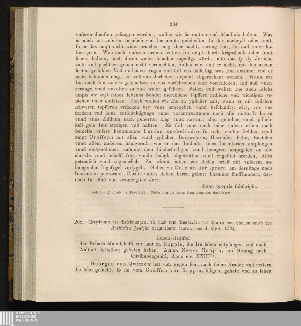 268. Verzeichniß der Belehnungen, die nach dem Aussterben der Grafen von Lindow durch[...]