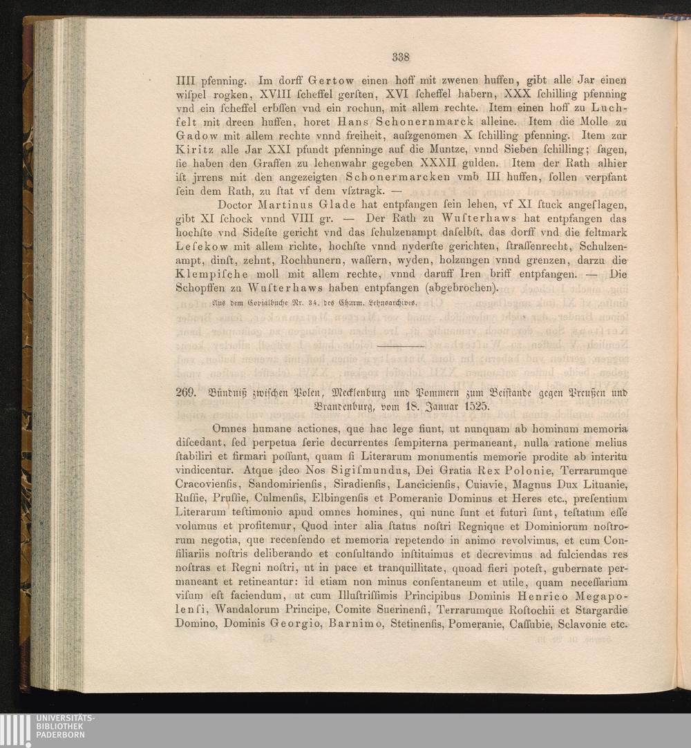 269. Bündniß zwischen Polen, Mecklenburg und Pommern zum Beistande gegen Preußen[...]