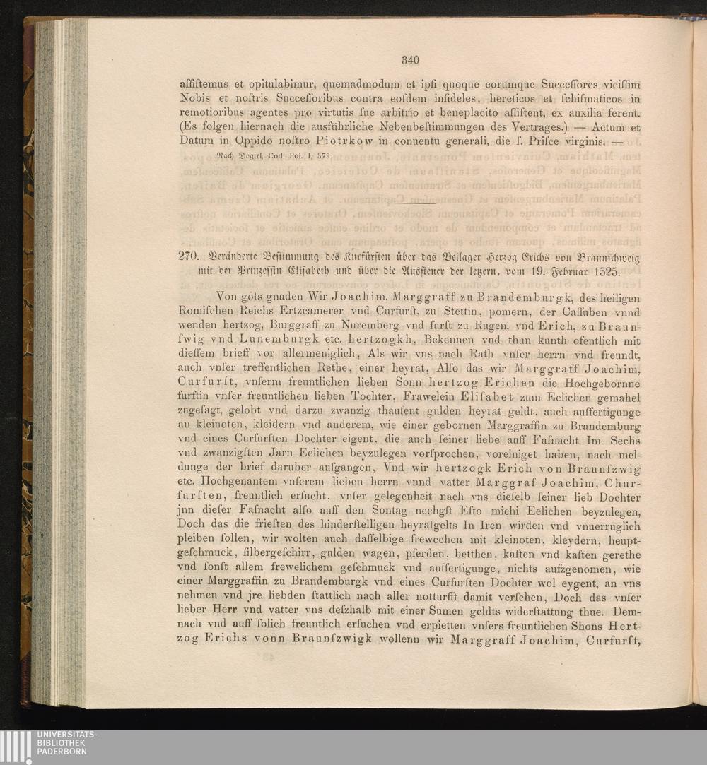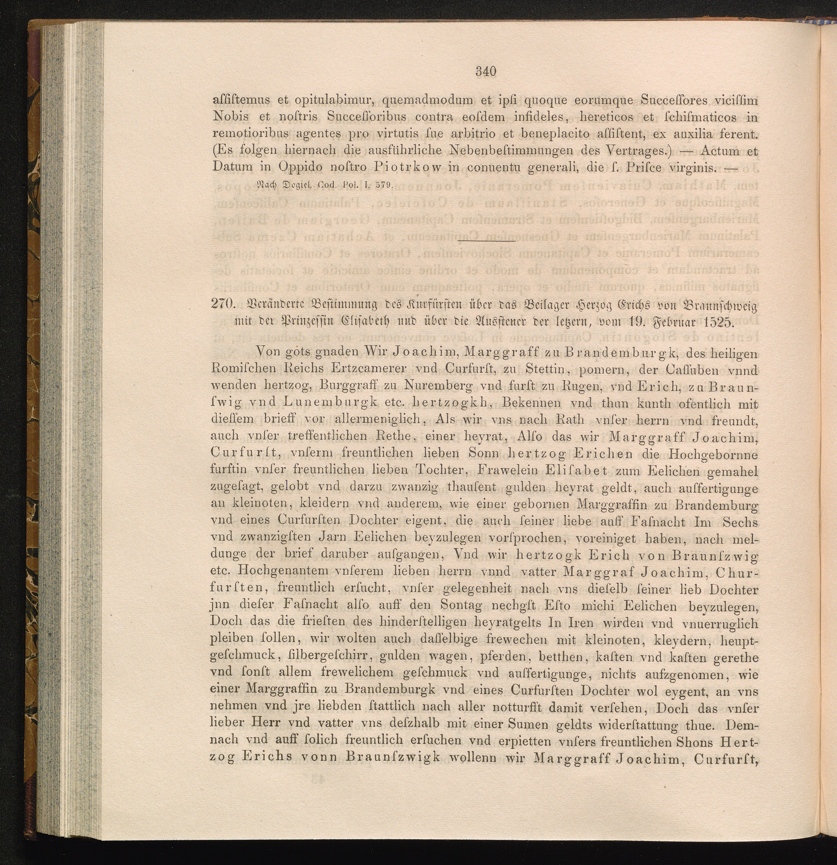270. Veränderte Bestimmung des Kurfürsten über Beilager Herzog Erichs von Braunschweig[...]