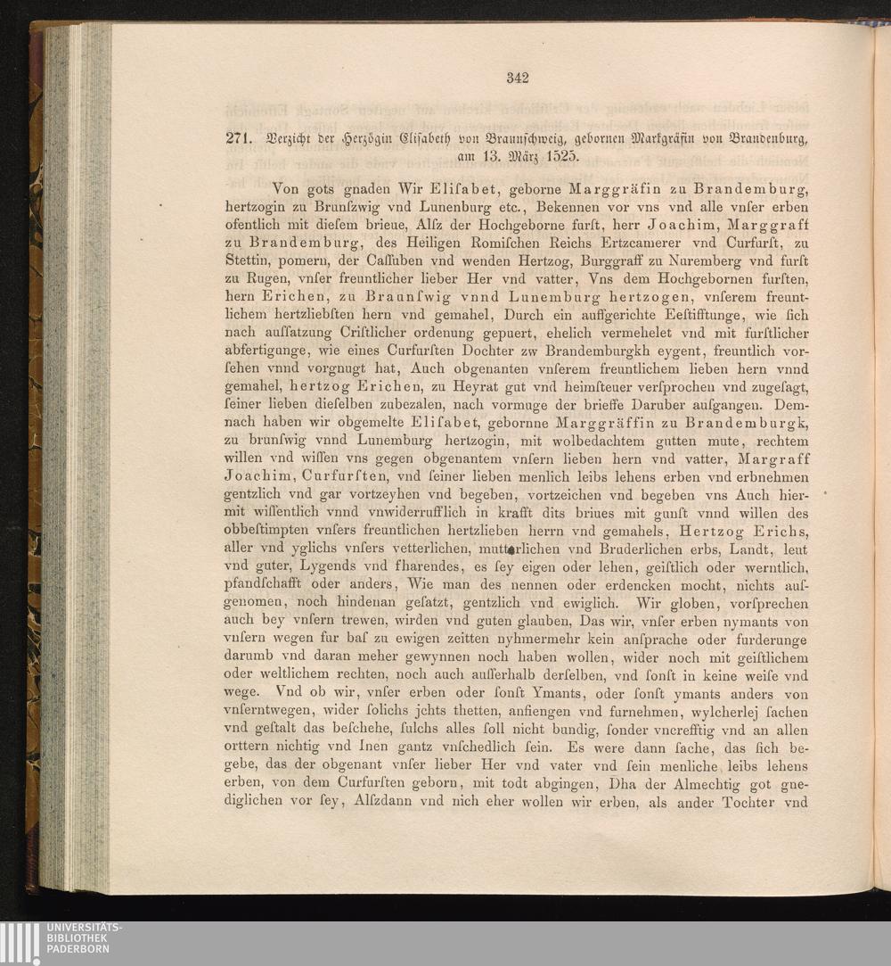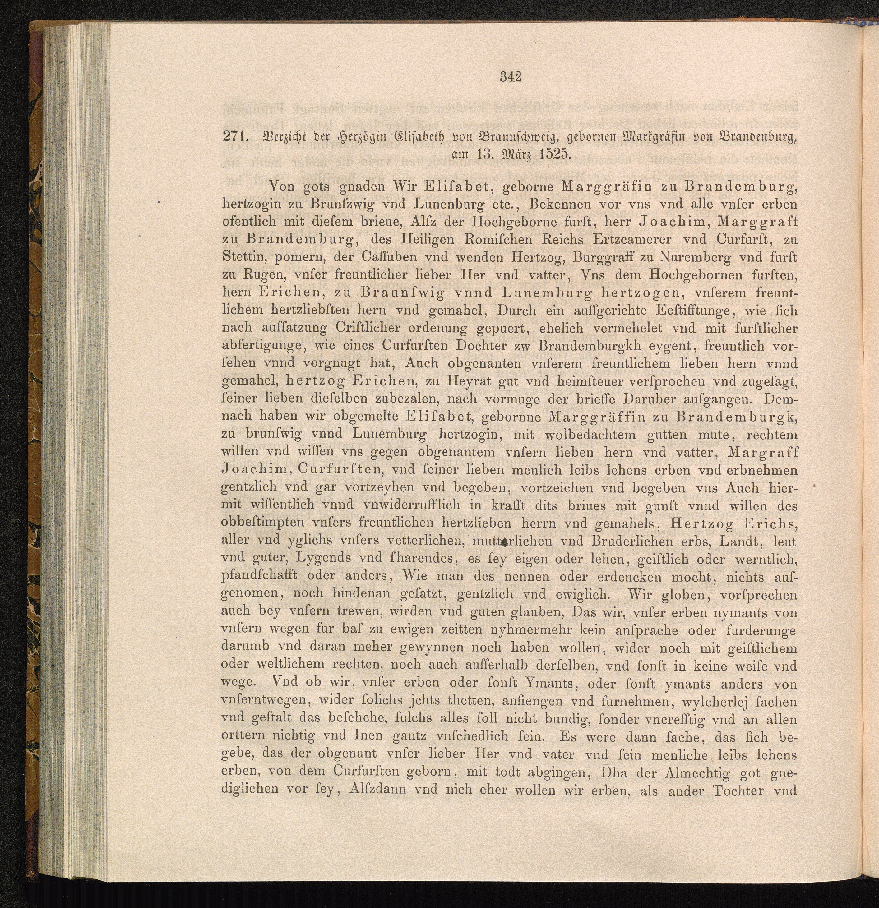271. Verzicht der Herzögin Elisabeth von Braunschweig gebornen Markgräfin von Brandenburg,[...]