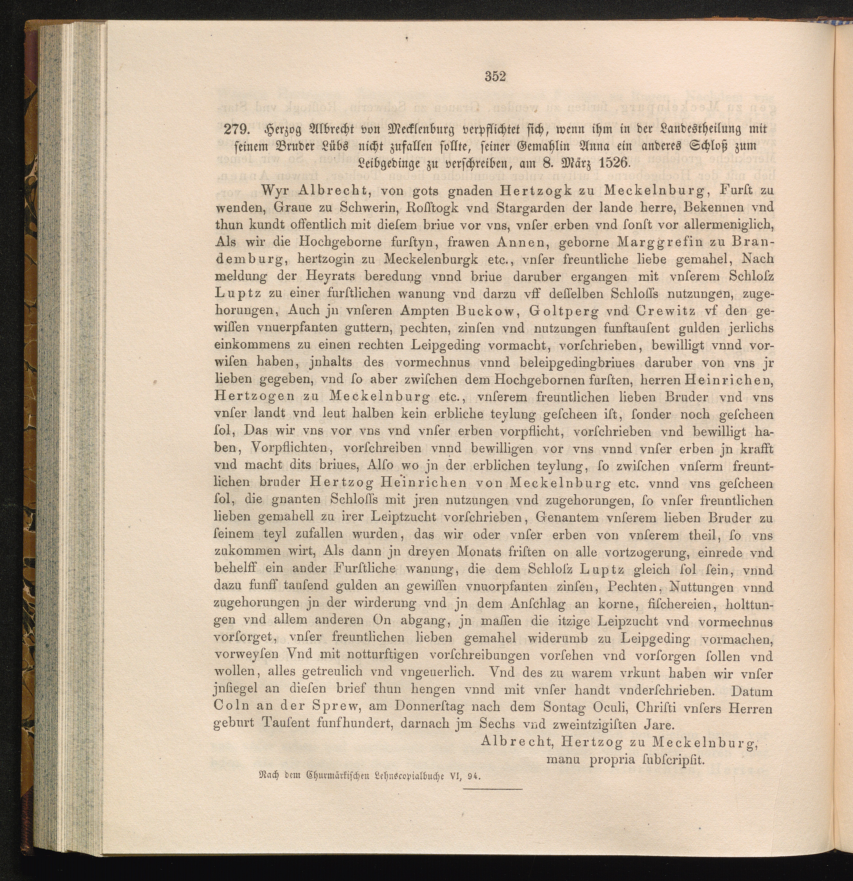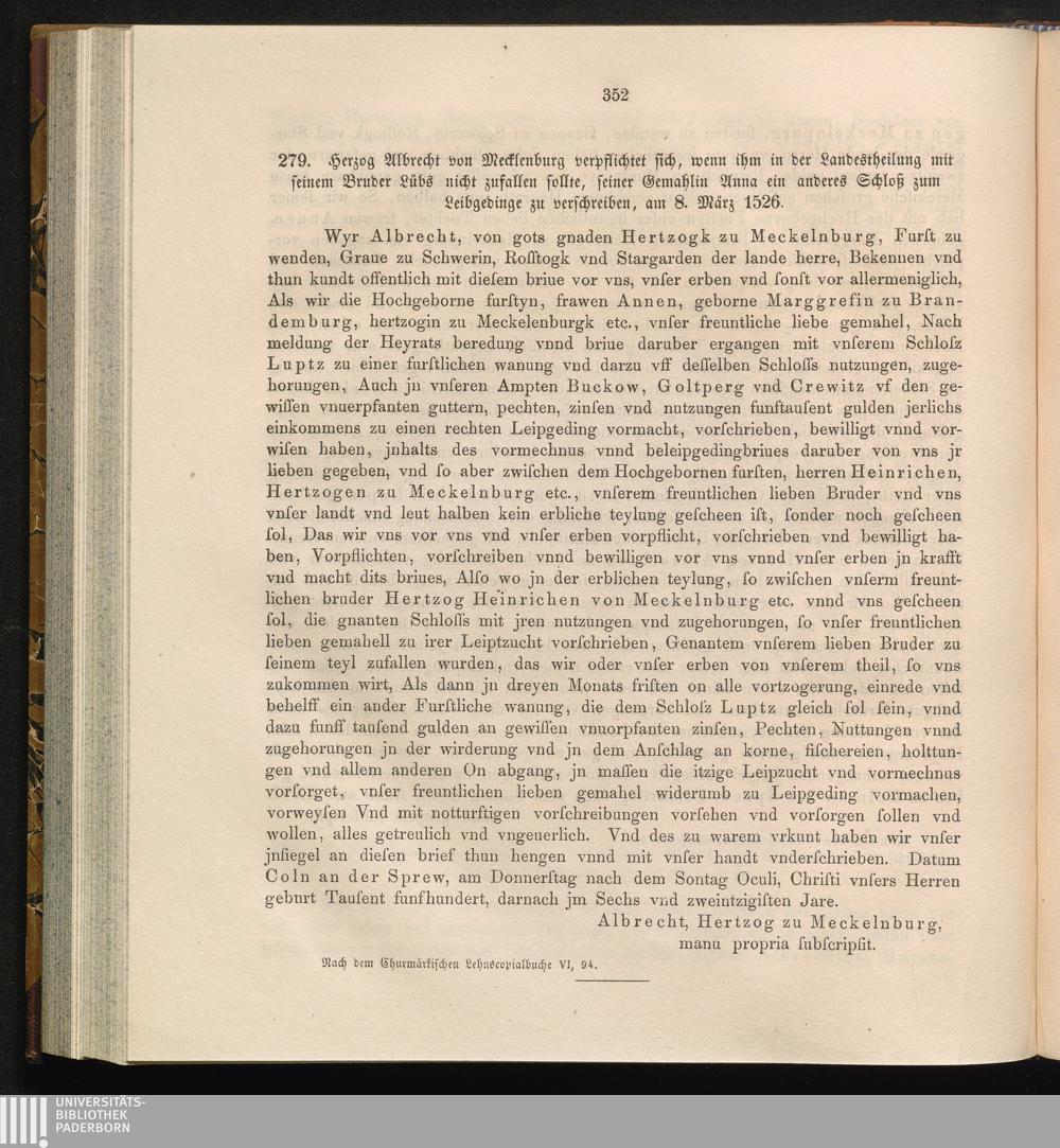 279. Herzog Albrecht von Mecklenburg verpflichtet sich, wenn ihm in der Landestheilung[...]