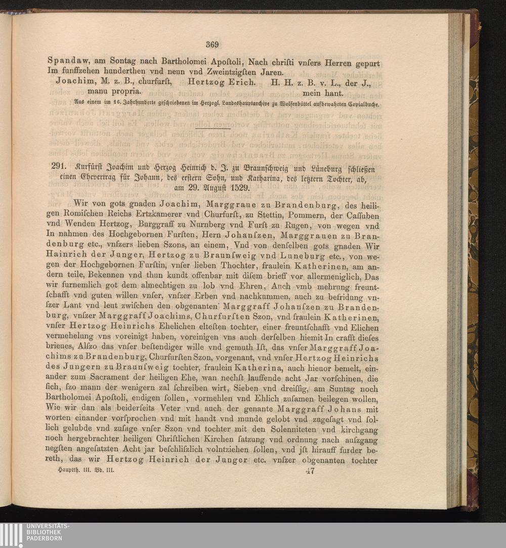 291. Kurfürst Joachim und Herzog Heinrich d. J. zu Braunschweig und Lüneburg schließen[...]