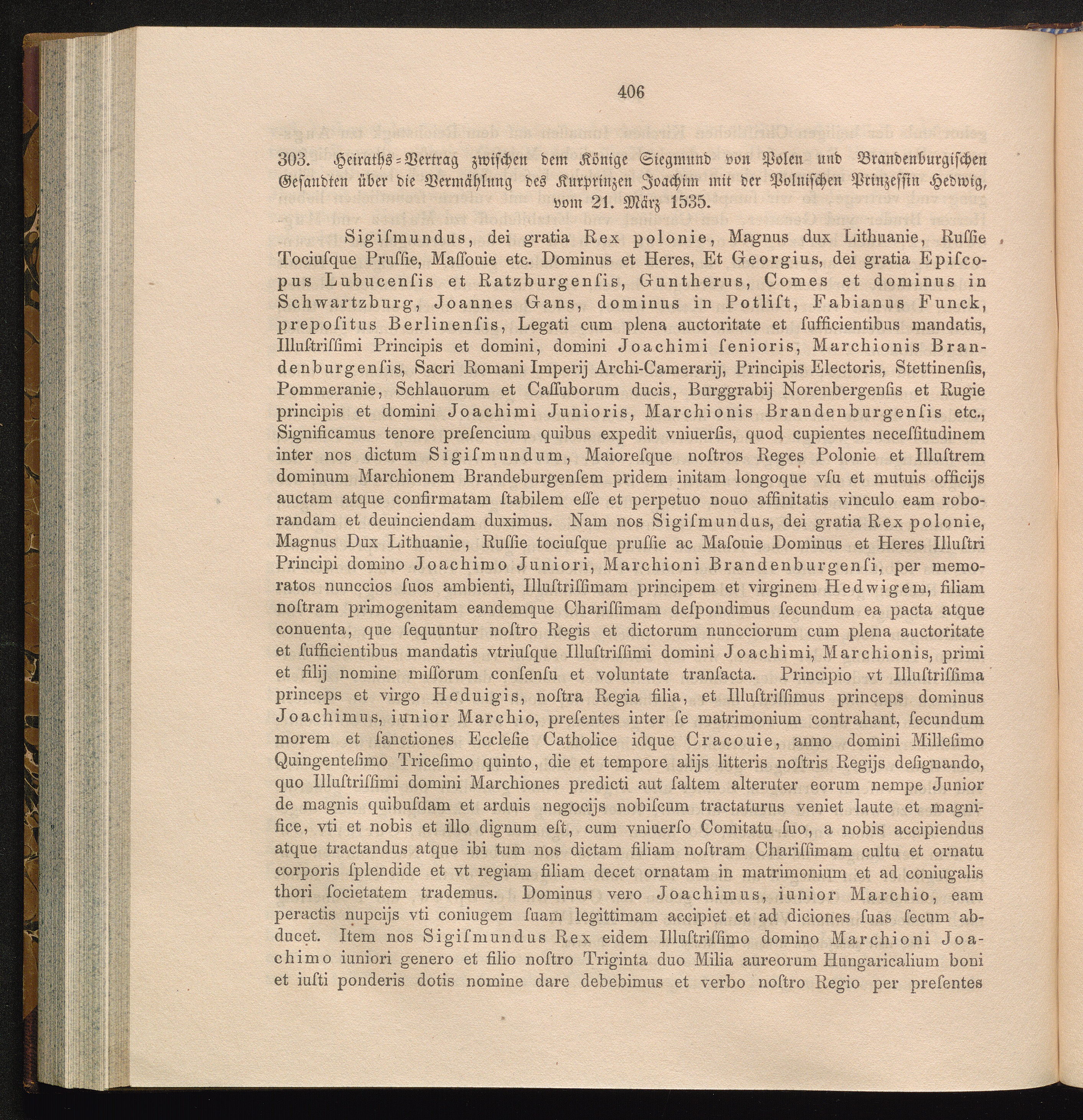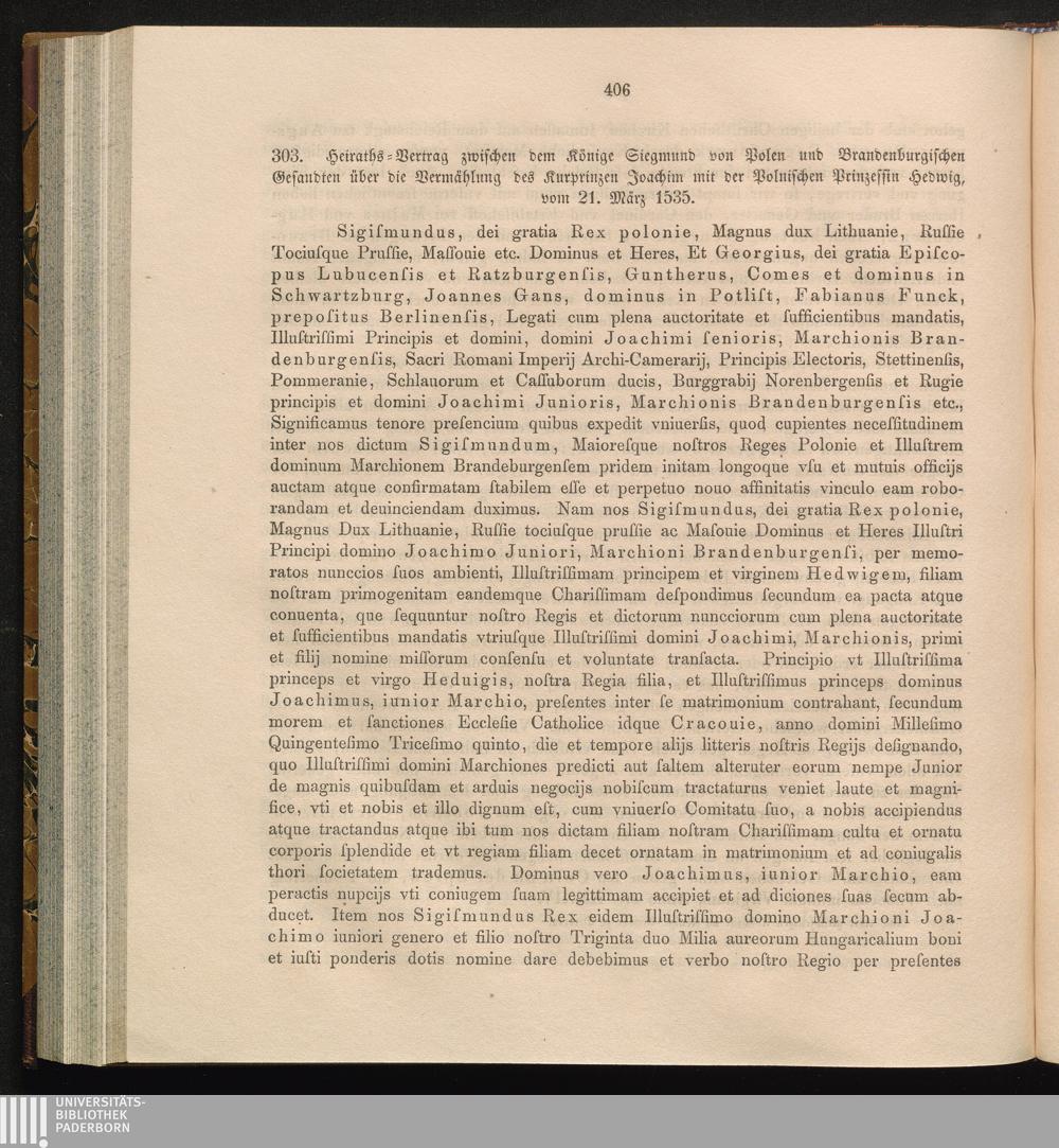 303. Heiraths-Vertrag zwischen dem Könige Siegmund von Polen und Brandenburgischen[...]