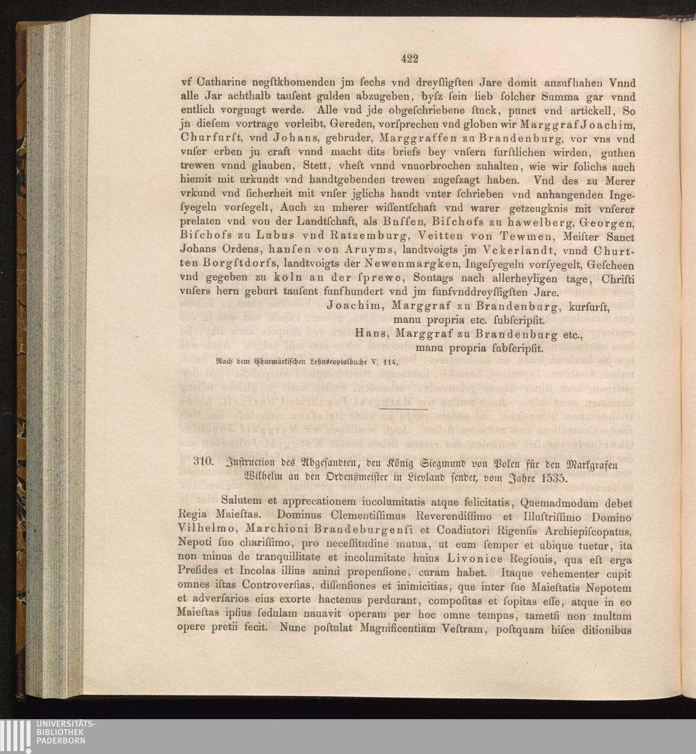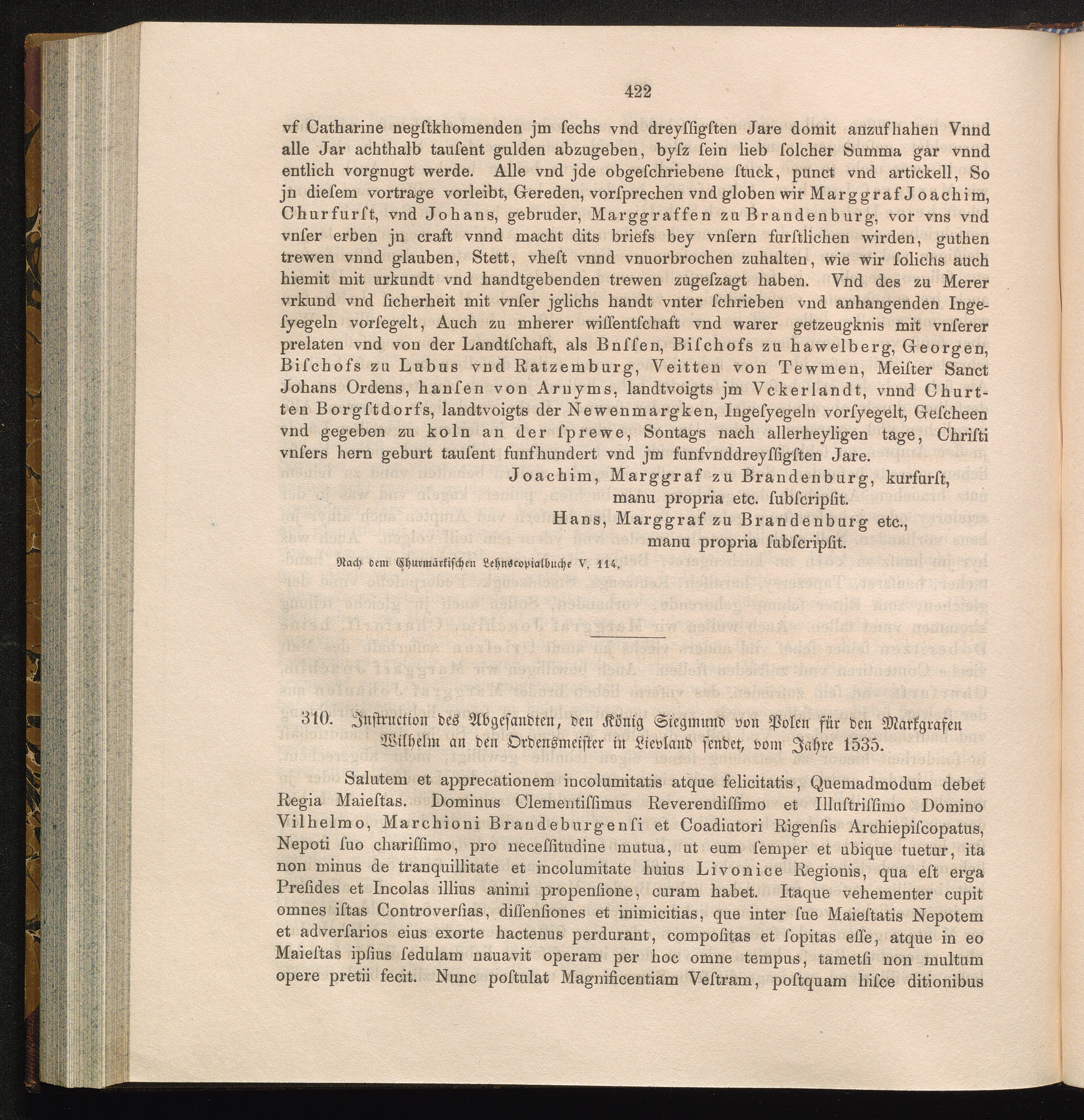 310. Jnstruction des Abgesandten, den König Siegmund von Polen für den Markgrafen[...]