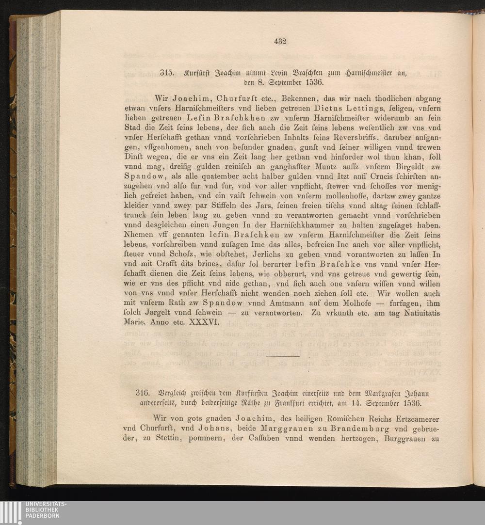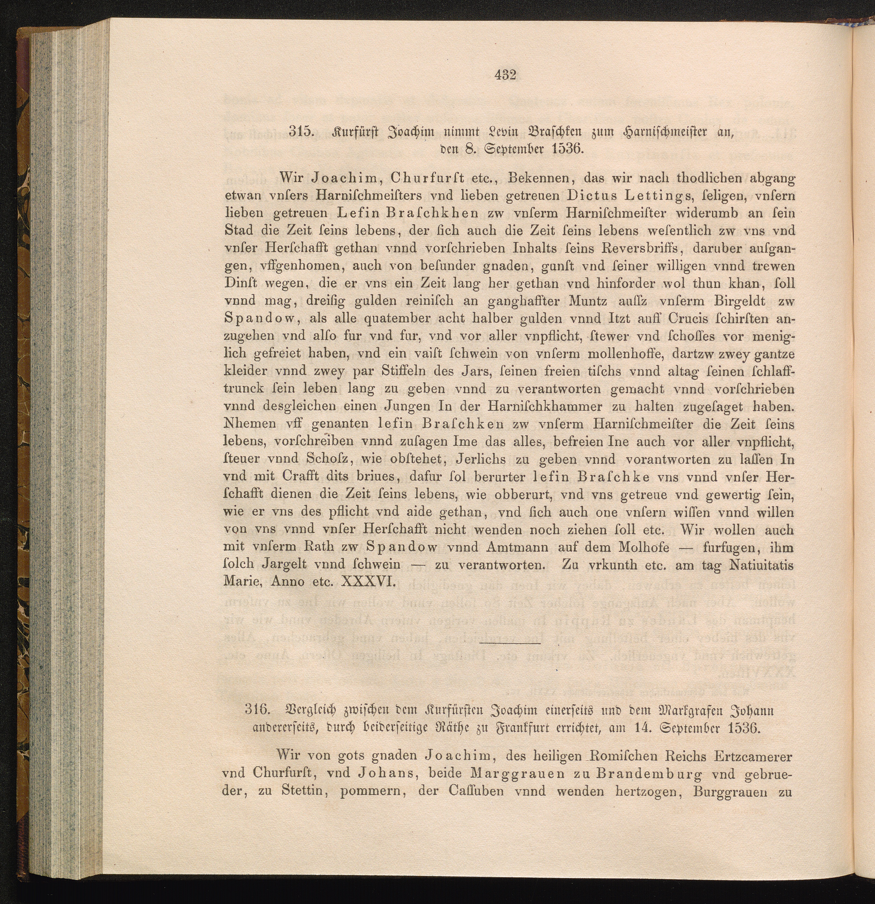 315. Kurfürst Joachim nimmt Levin Braschen zum Harnischmeister an, den 8. September[...]
