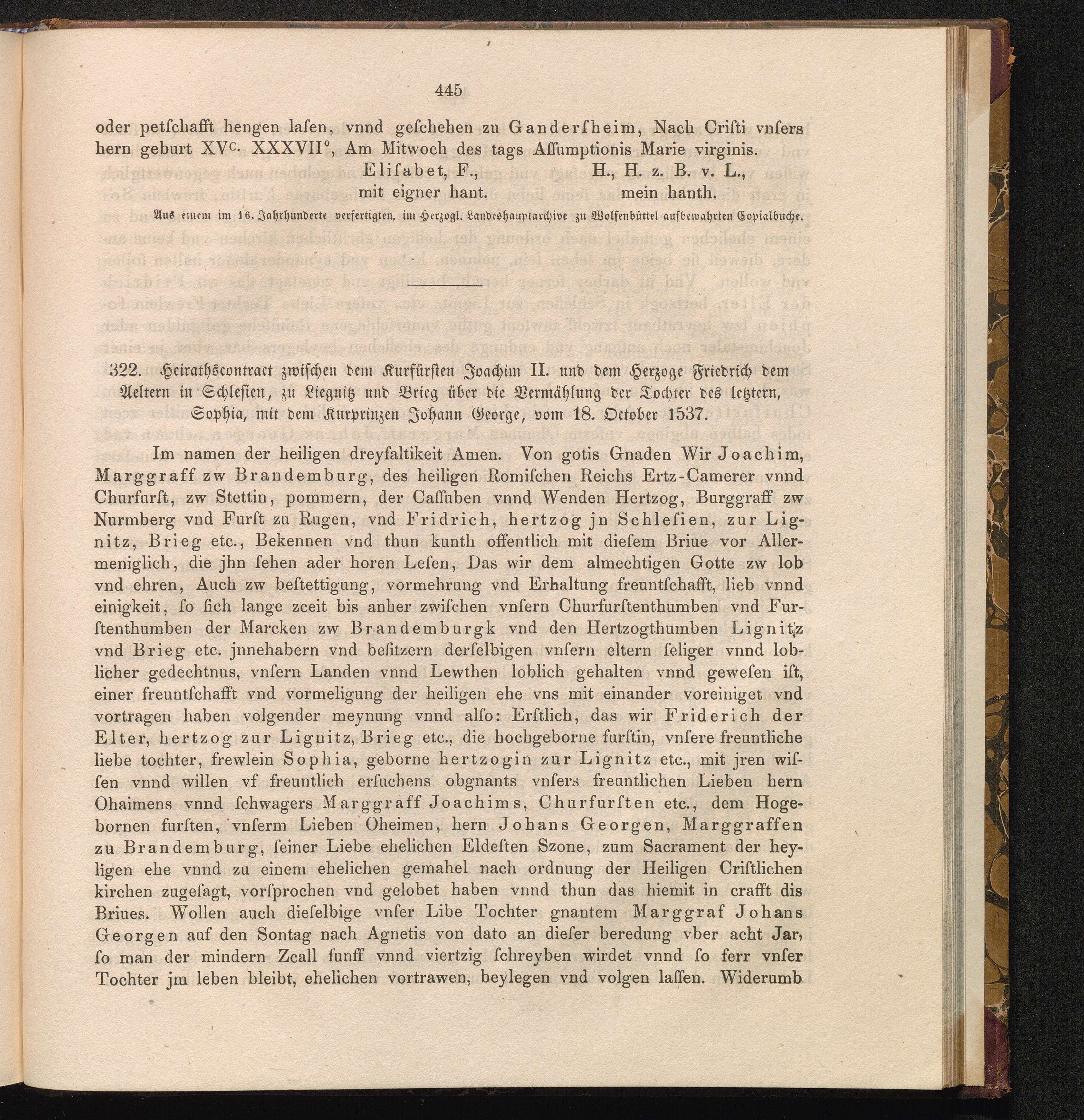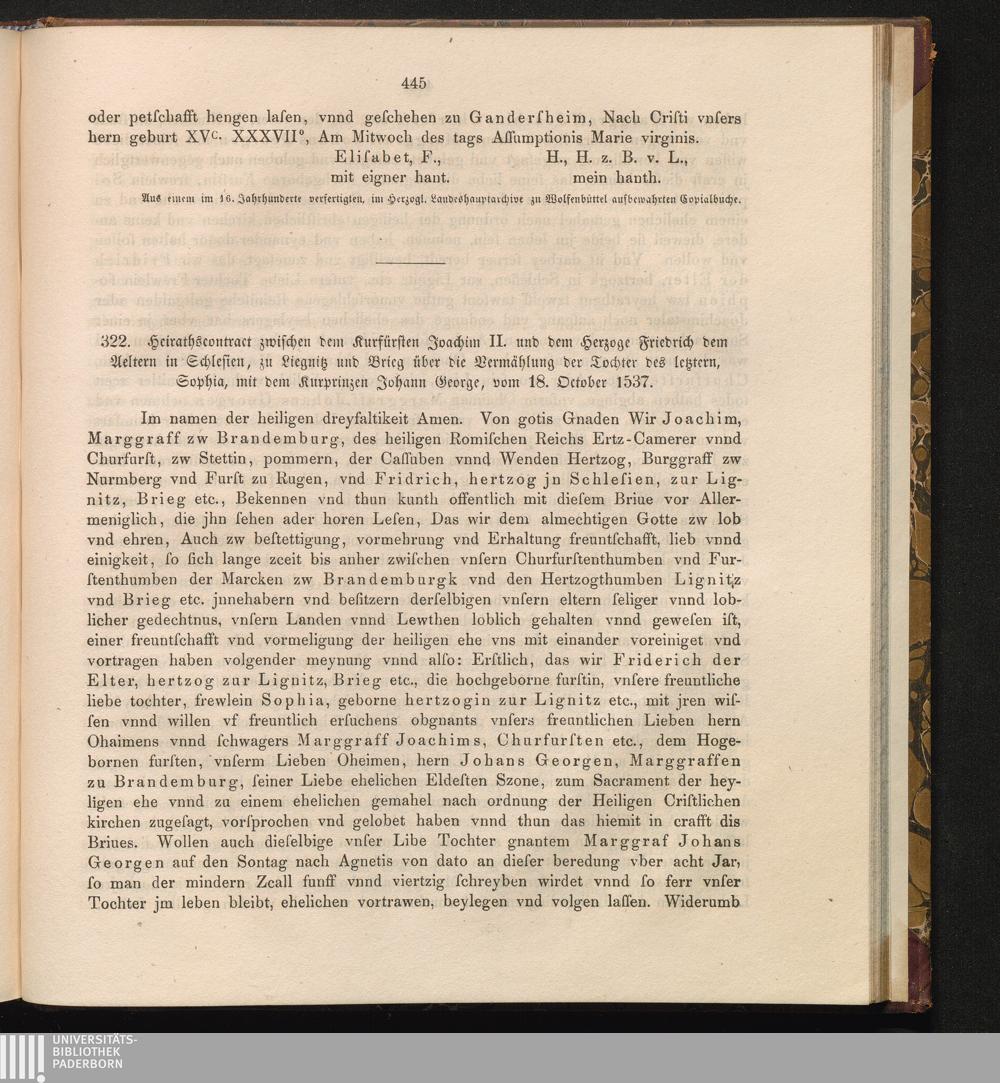 322. Heirathsconstract zwischen dem Kurfürsten Joachim II. und dem Herzoge Friedrich[...]