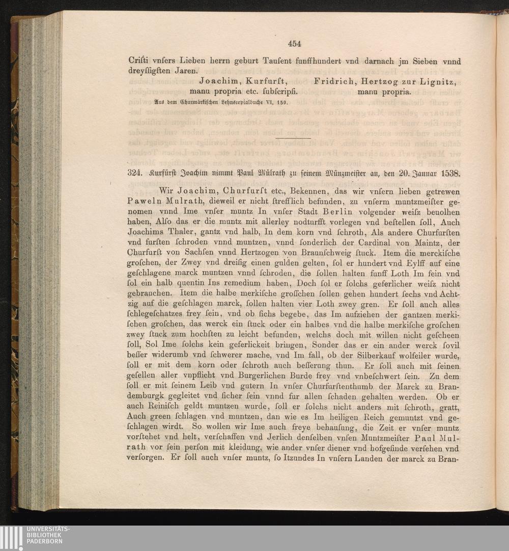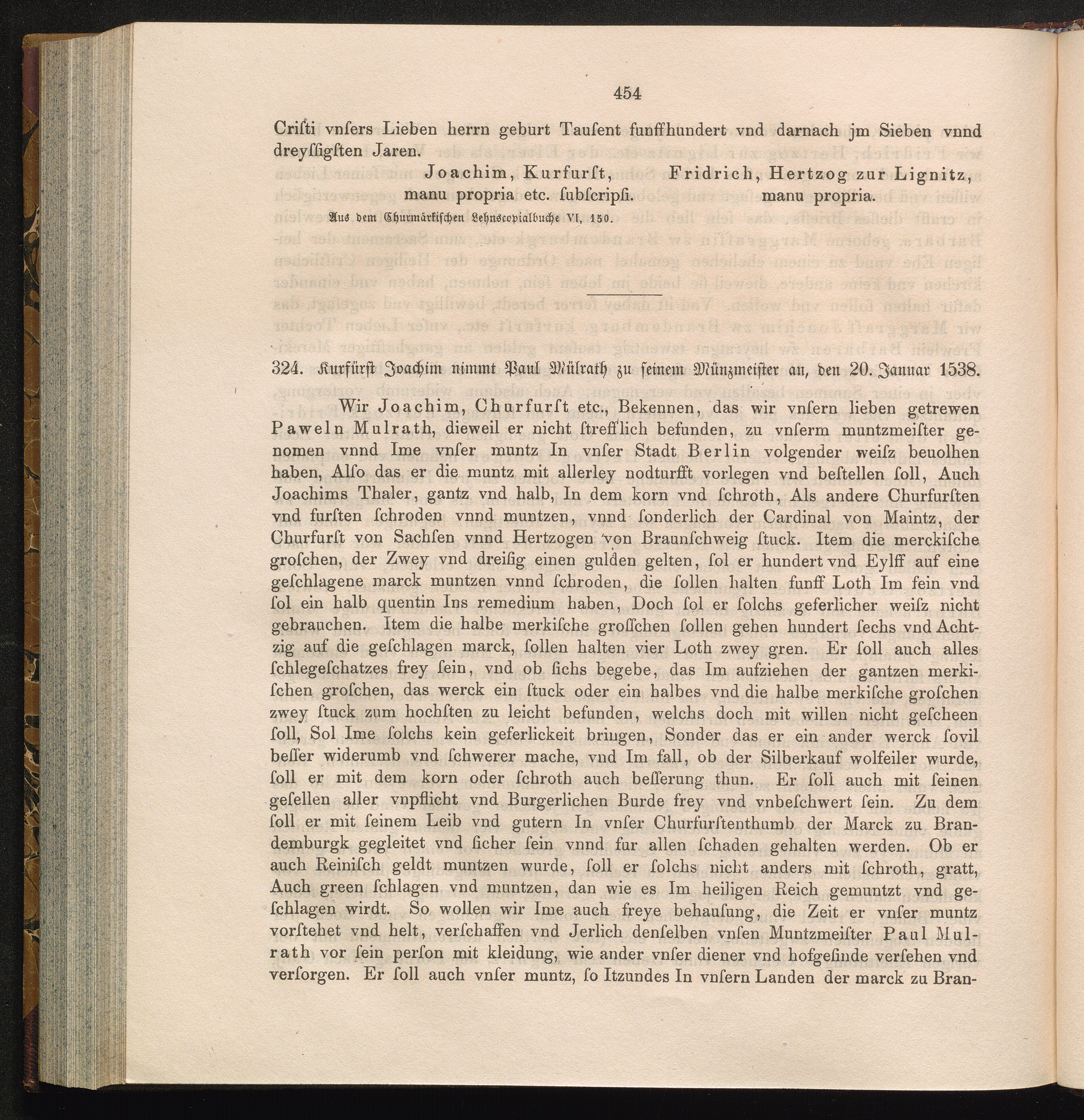 324. Kurfürst Joachim nimmt Paul Mühlrath zu seinem Münzmeister an, den 20. Januar[...]