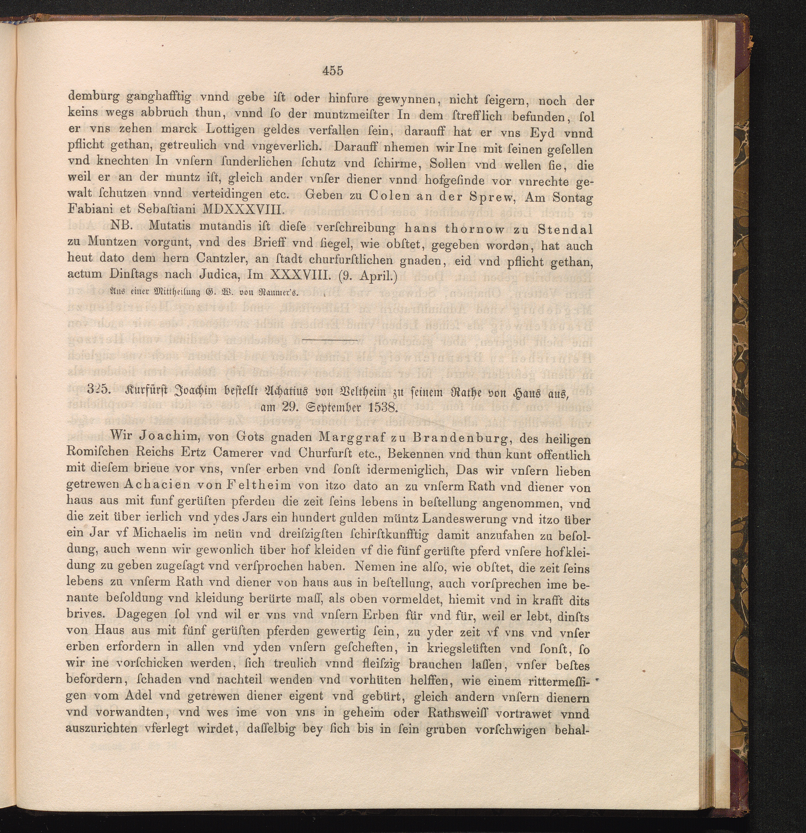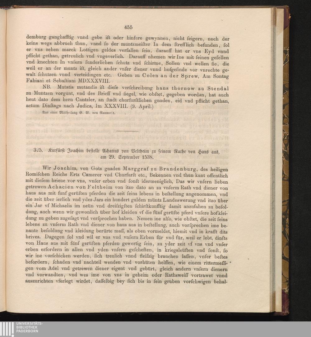 325. Kurfürst Joachim bestellt Achatius von Veltheim zu seinem Rathe von Haus aus,[...]