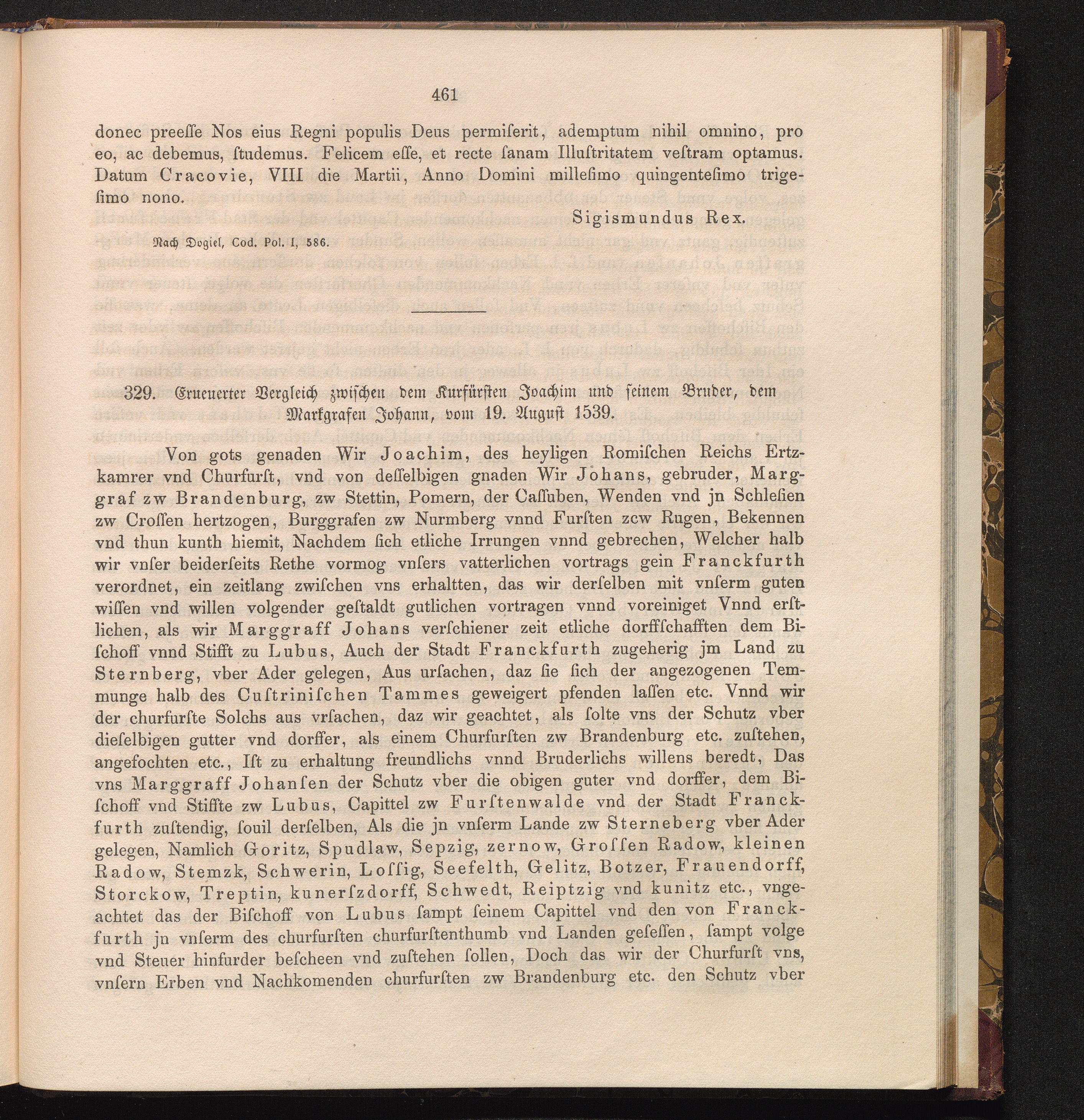 329. Erneuerter Vergleich zwischen dem Kurfürsten Joachim und seinem Bruder, dem[...]
