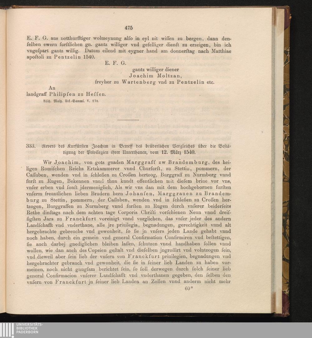 333. Revers des Kurfürsten Joachim in Betreff des brüderlichen Vergleichs über die[...]