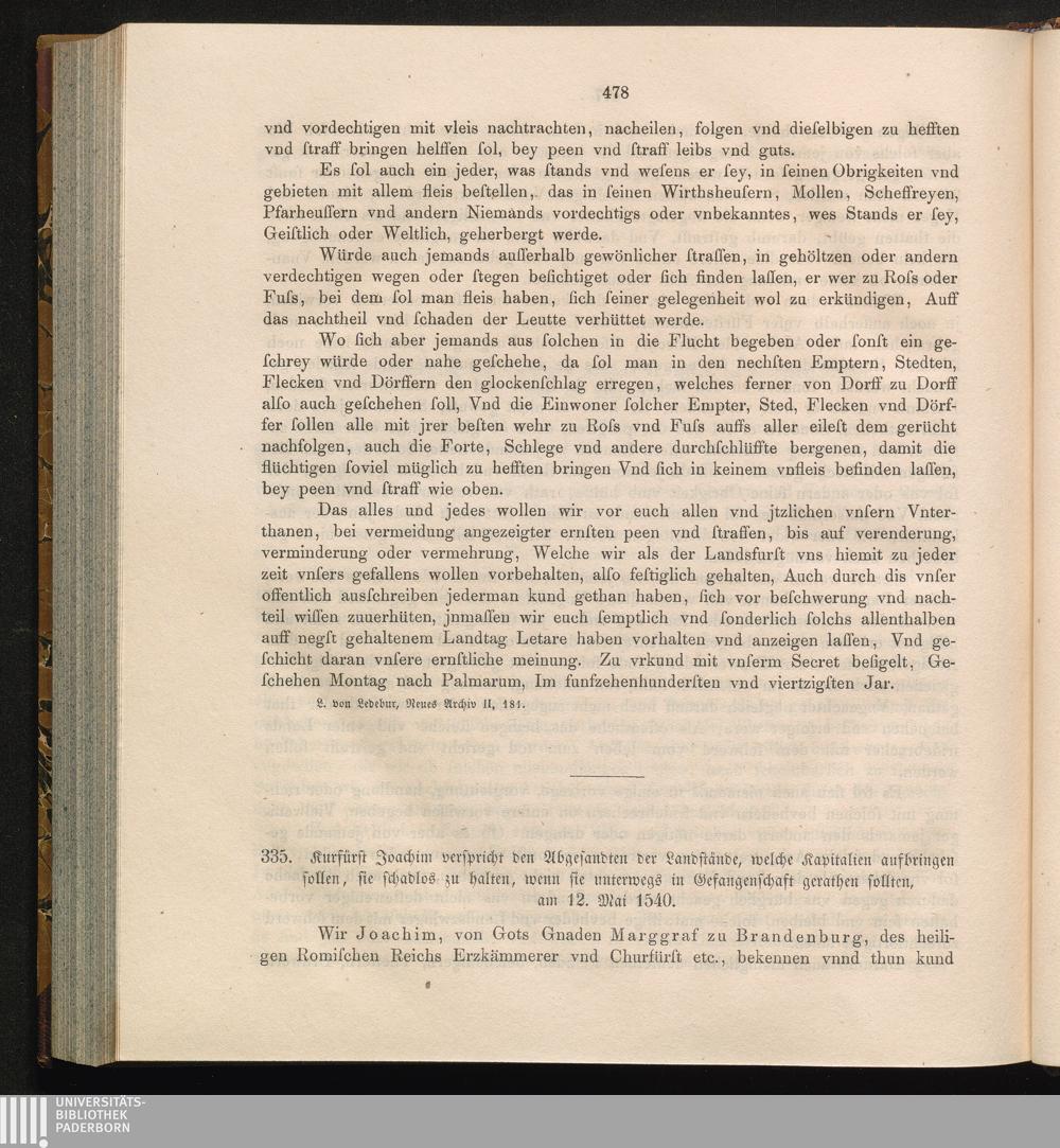 335. Kurfürst Joachim verspricht den Abgesandten der Landstände, welche Kapitalien[...]