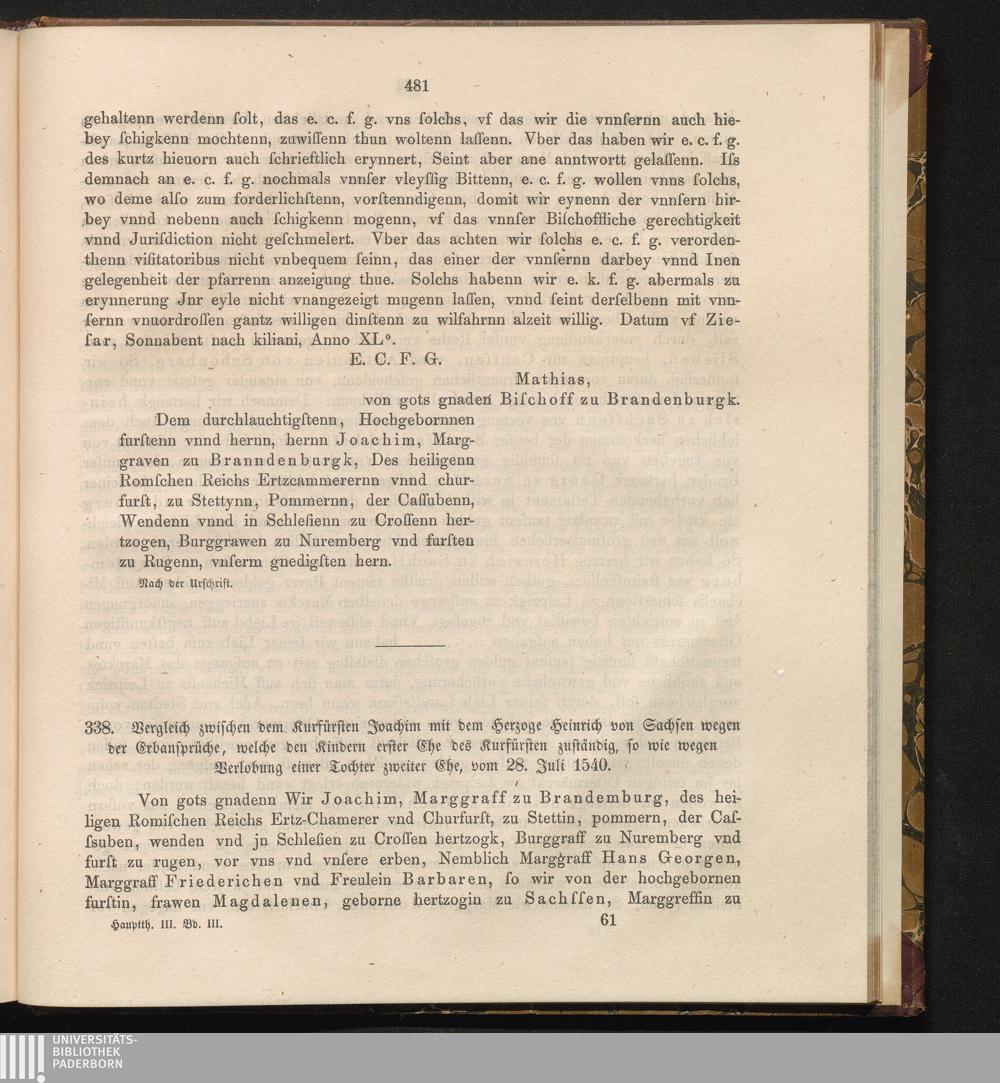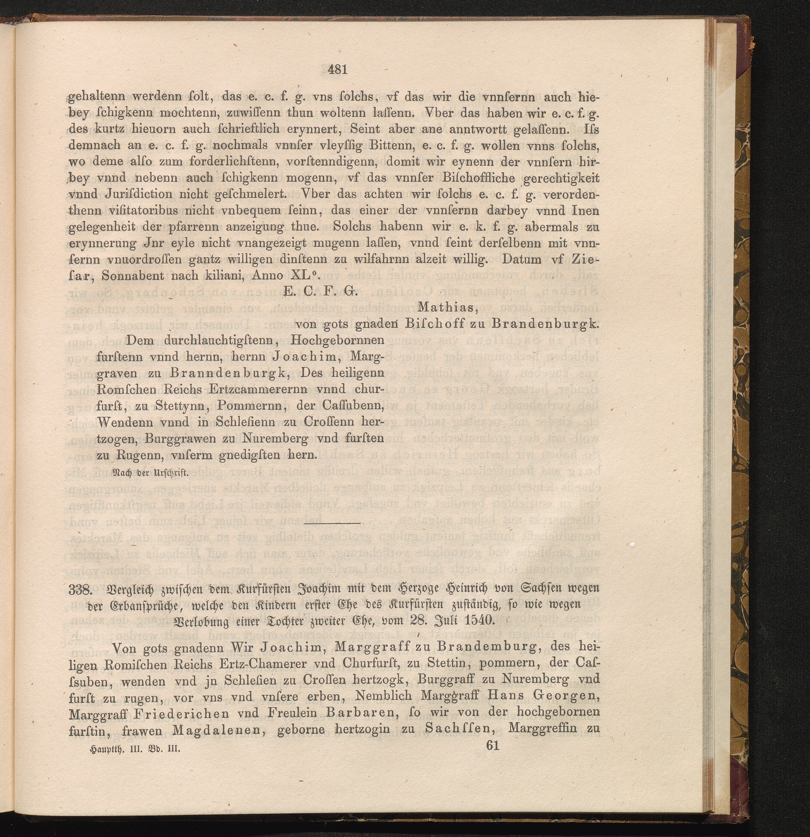 338. Vergleich zwischen dem Kurfürsten Joachim mit dem Herzoge Heinrich von Sachsen[...]