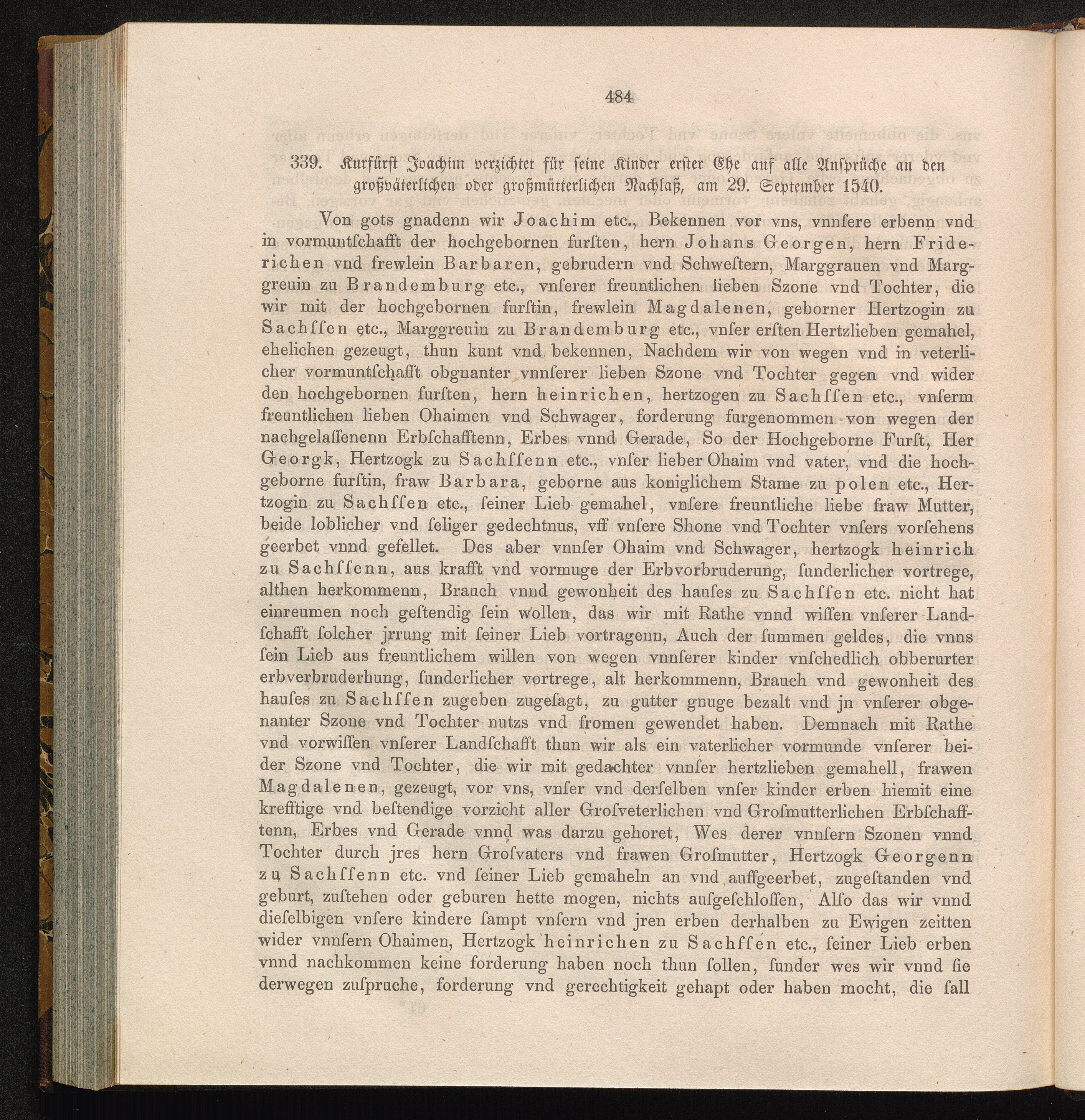 339. Kurfürst Joachim verzichtet für seine Kinder erster Ehe auf alle Ansprüche an[...]