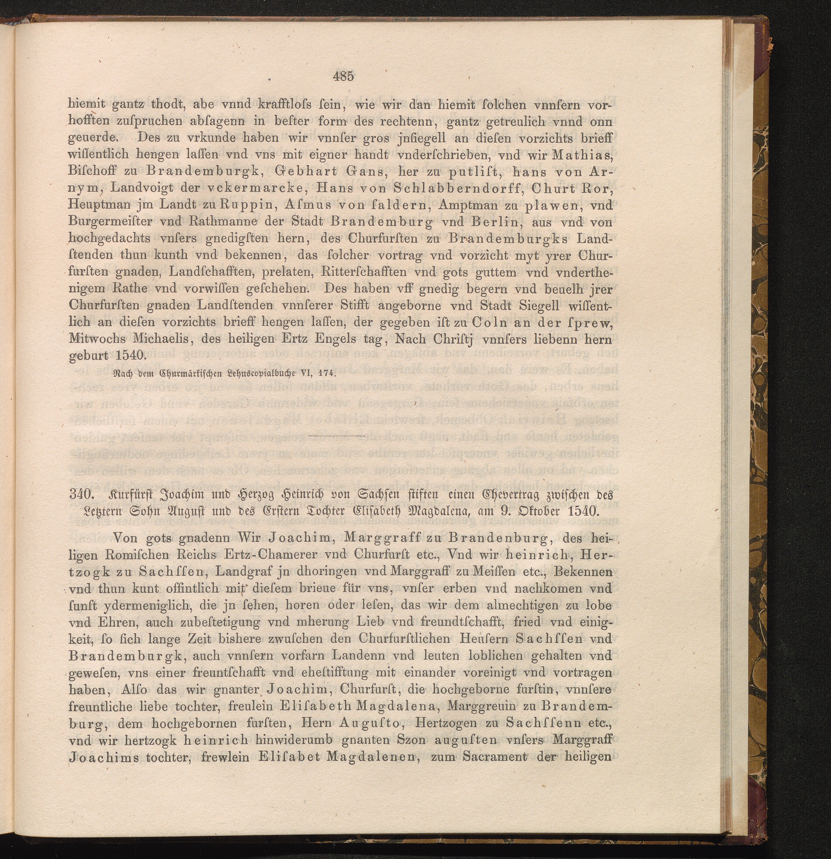 340. Kurfürst Joachim und Herzog Heinrich von Sachsen stiften einen Ehevertrag zwischen[...]