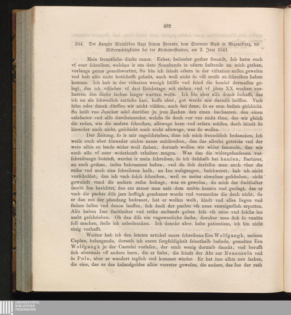 344. Der Kanzler Weinlöben klagt seinem Freunde, dem Secretair Bach in Regensburg,[...]