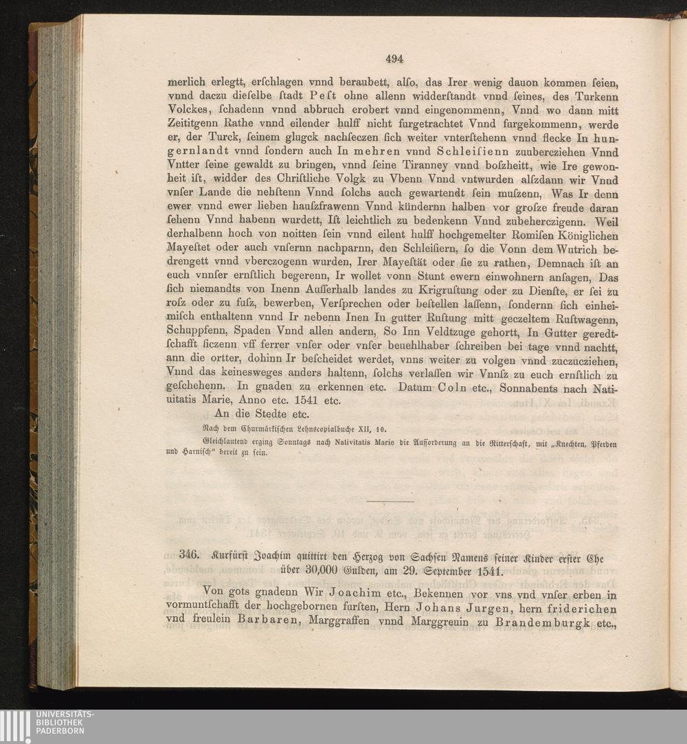346. Kurfürst Joachim quittirt den Herzog von Sachsen Namens seiner Kinder erster[...]